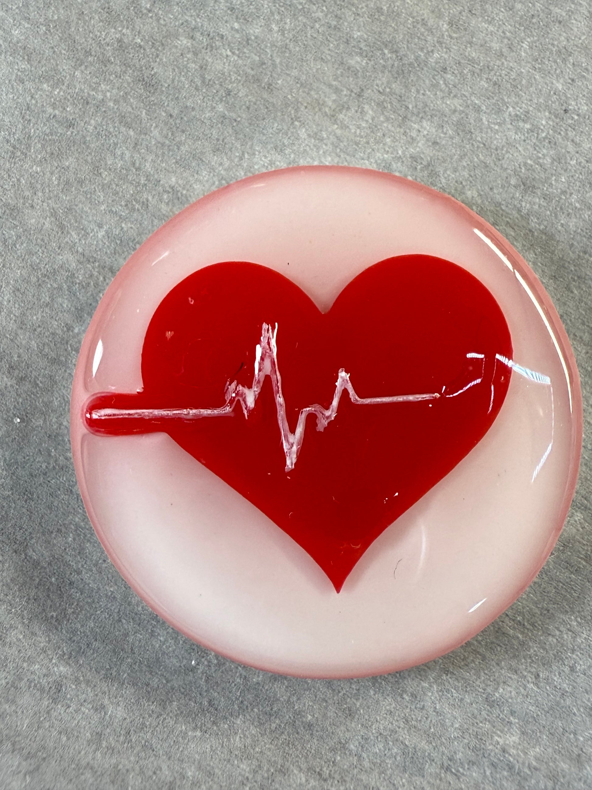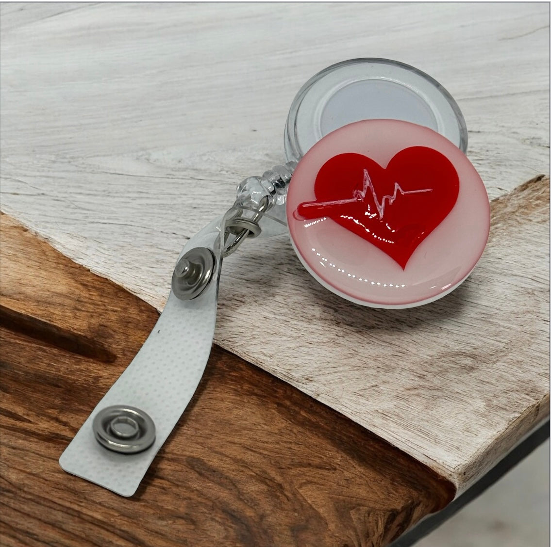 This round name badge accessory is expertly crafted from epoxy resin and features a striking red heart with an ECG line on a white background. Designed for healthcare professionals, it offers a subtle yet impactful way to showcase your passion and dedication. Its durable construction ensures long-lasting wear, making it a meaningful addition to your professional attire.