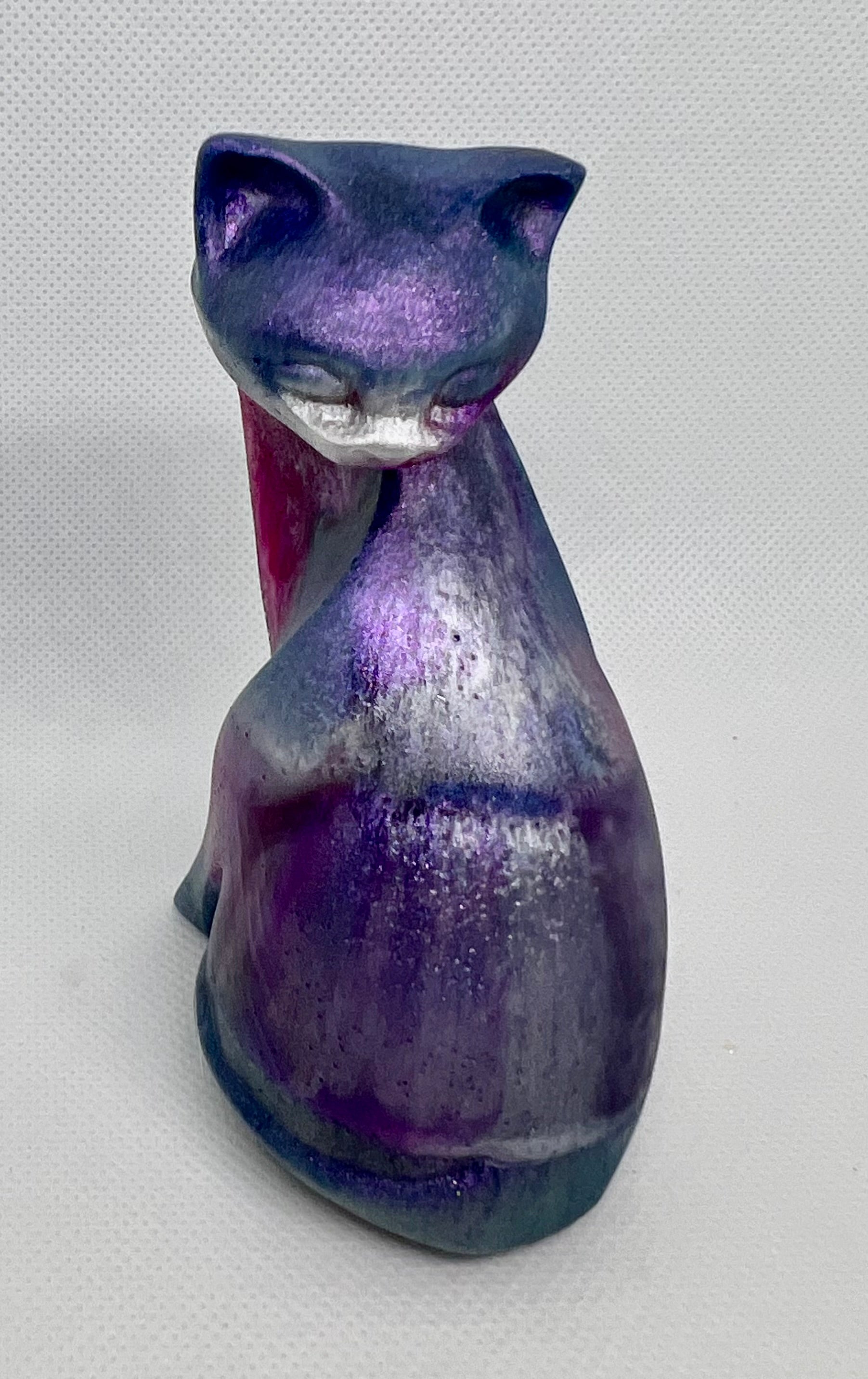 Expertly crafted with epoxy resin, this unique cat sculpture is a must-have for art enthusiasts. Its beautiful blend of colors makes it a one of a kind addition to any collection, while also serving as a perfect cat memorial piece. Invest in this truly special piece today.