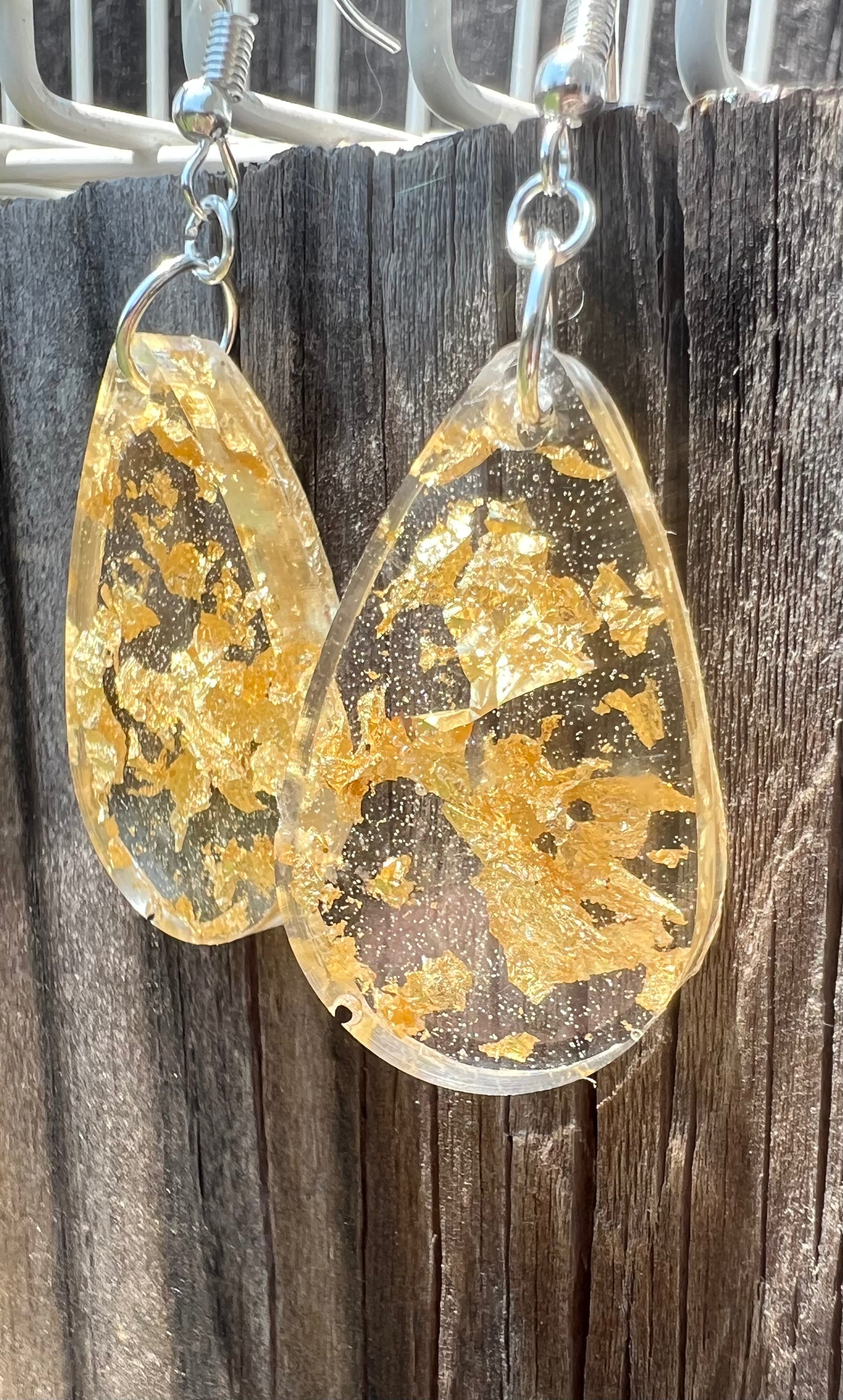 These epoxy earrings feature striking gold flakes, providing the perfect balance between captivating sparkle and subtlety. Perfect for both formal and casual occasions, they're sure to be a conversation starter.