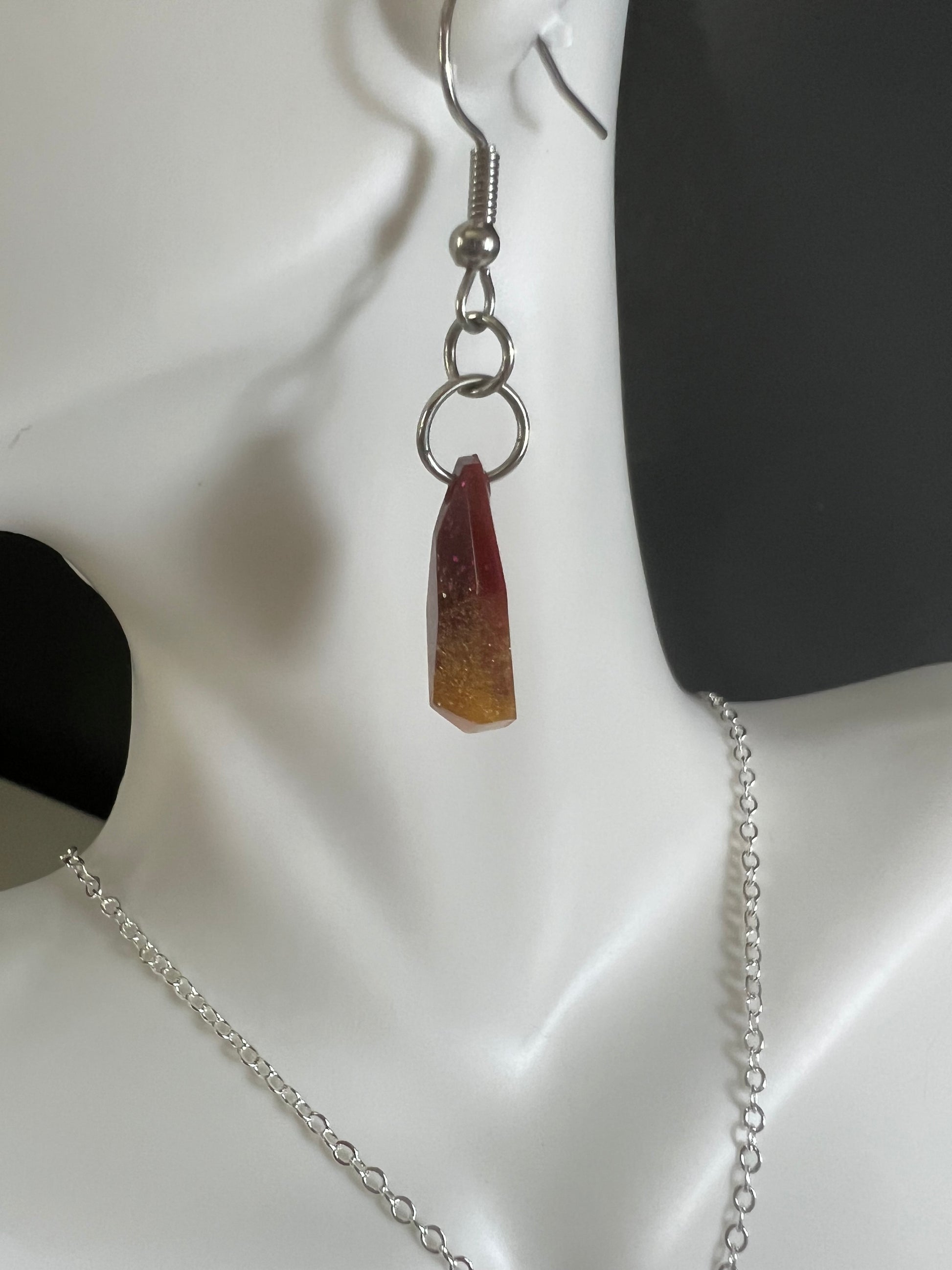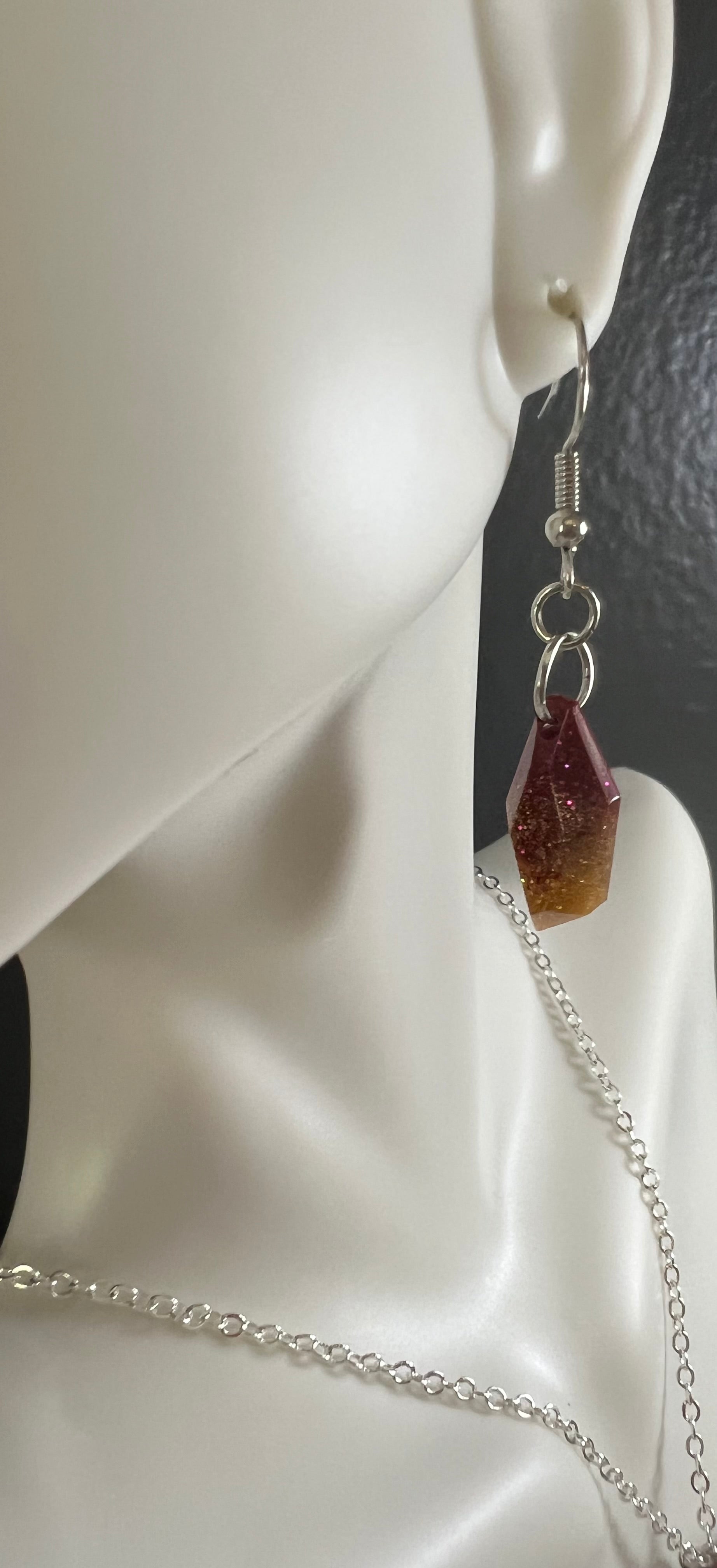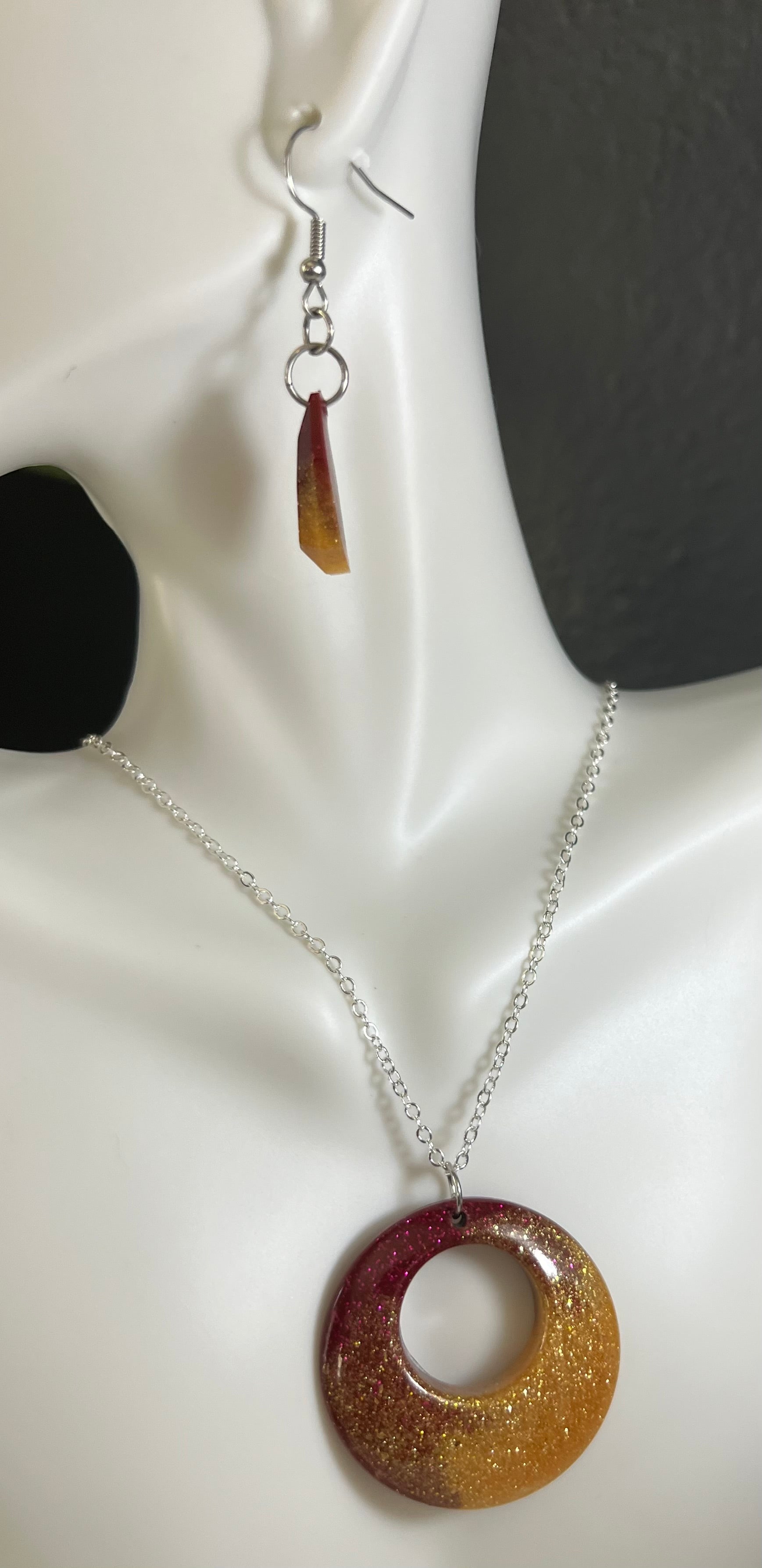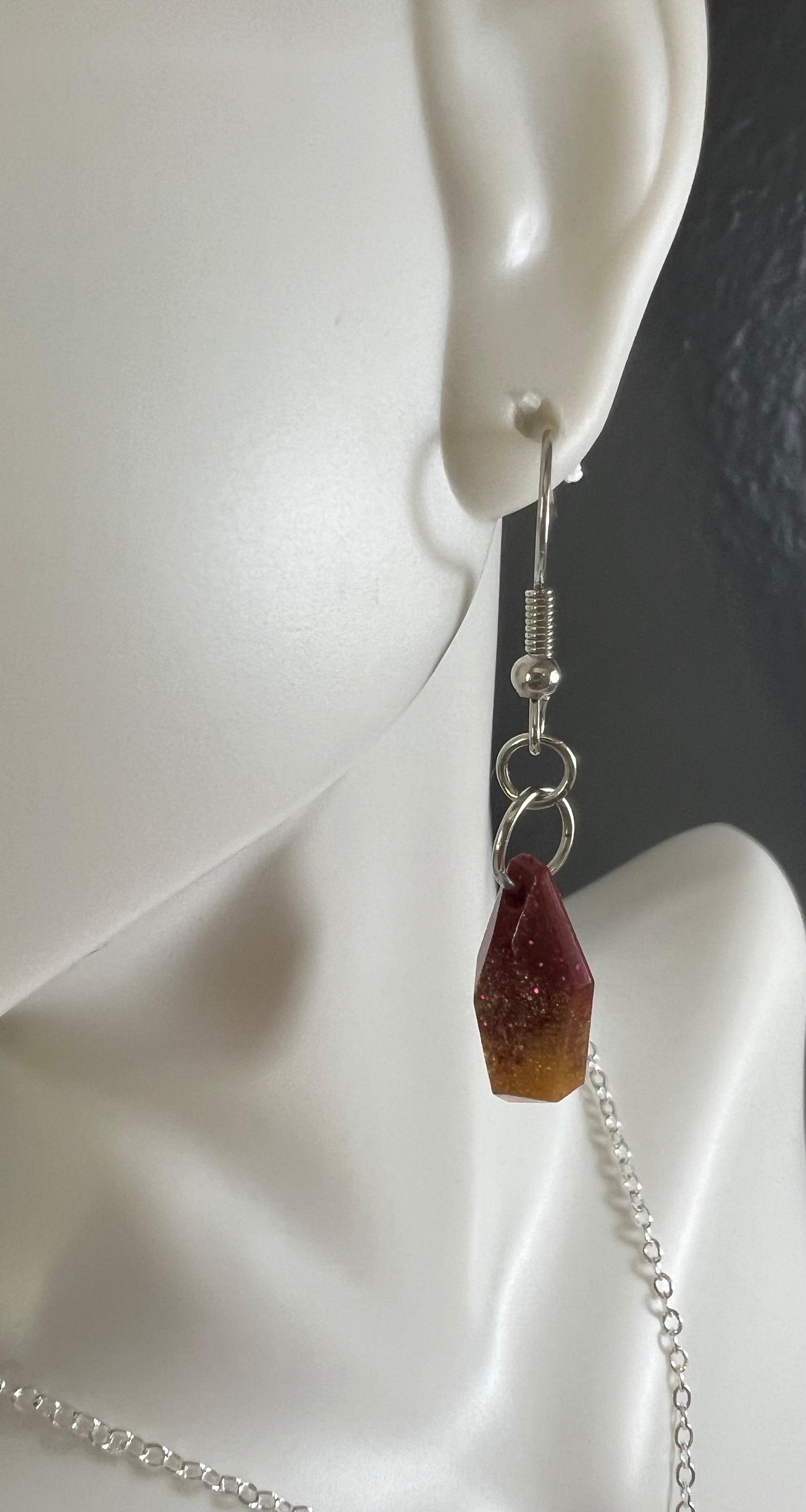 These epoxy earrings blend maroon and dazzling gold for an eye-catching look. They are lightweight yet durable, making them suitable for everyday wear.