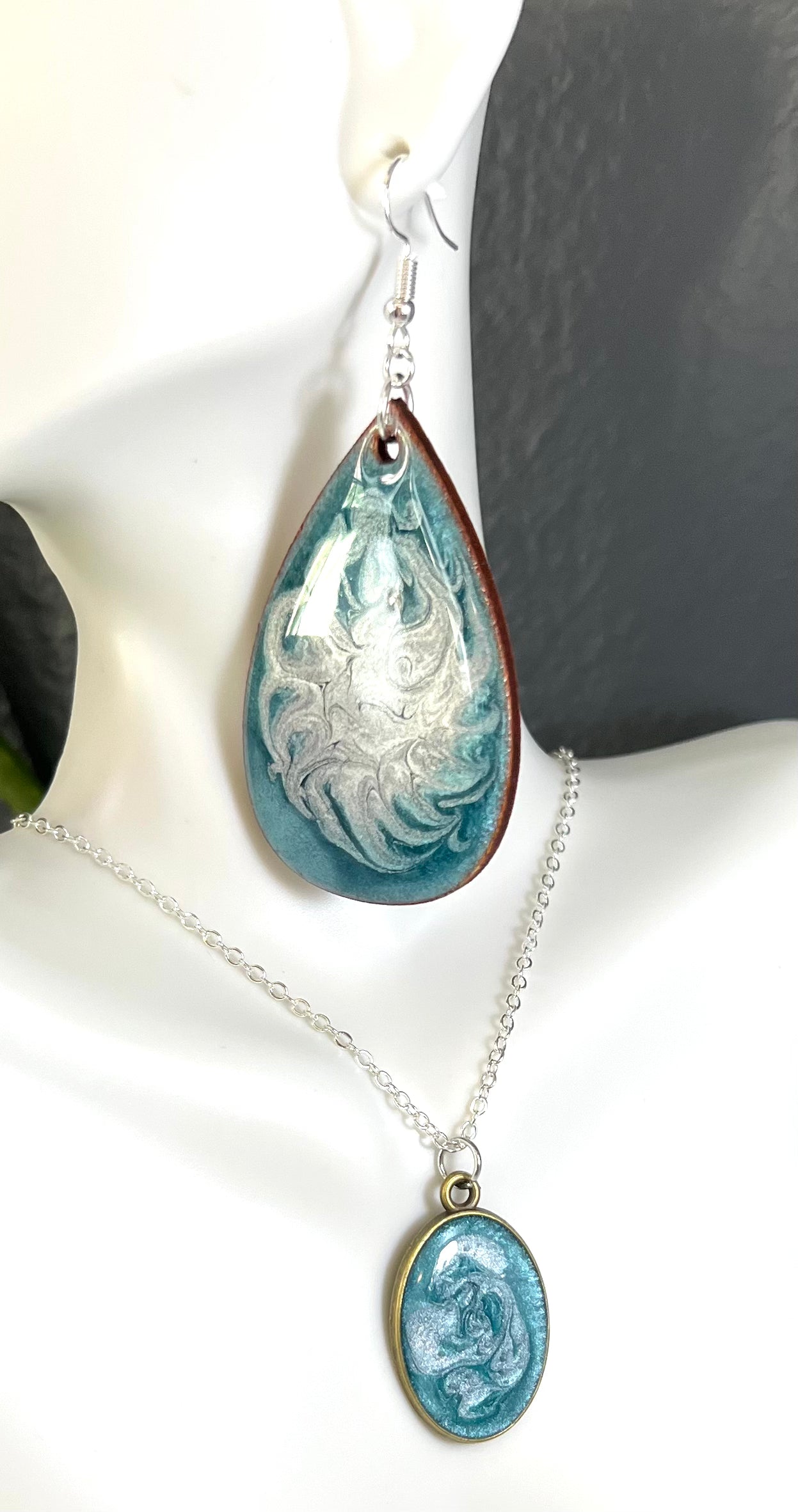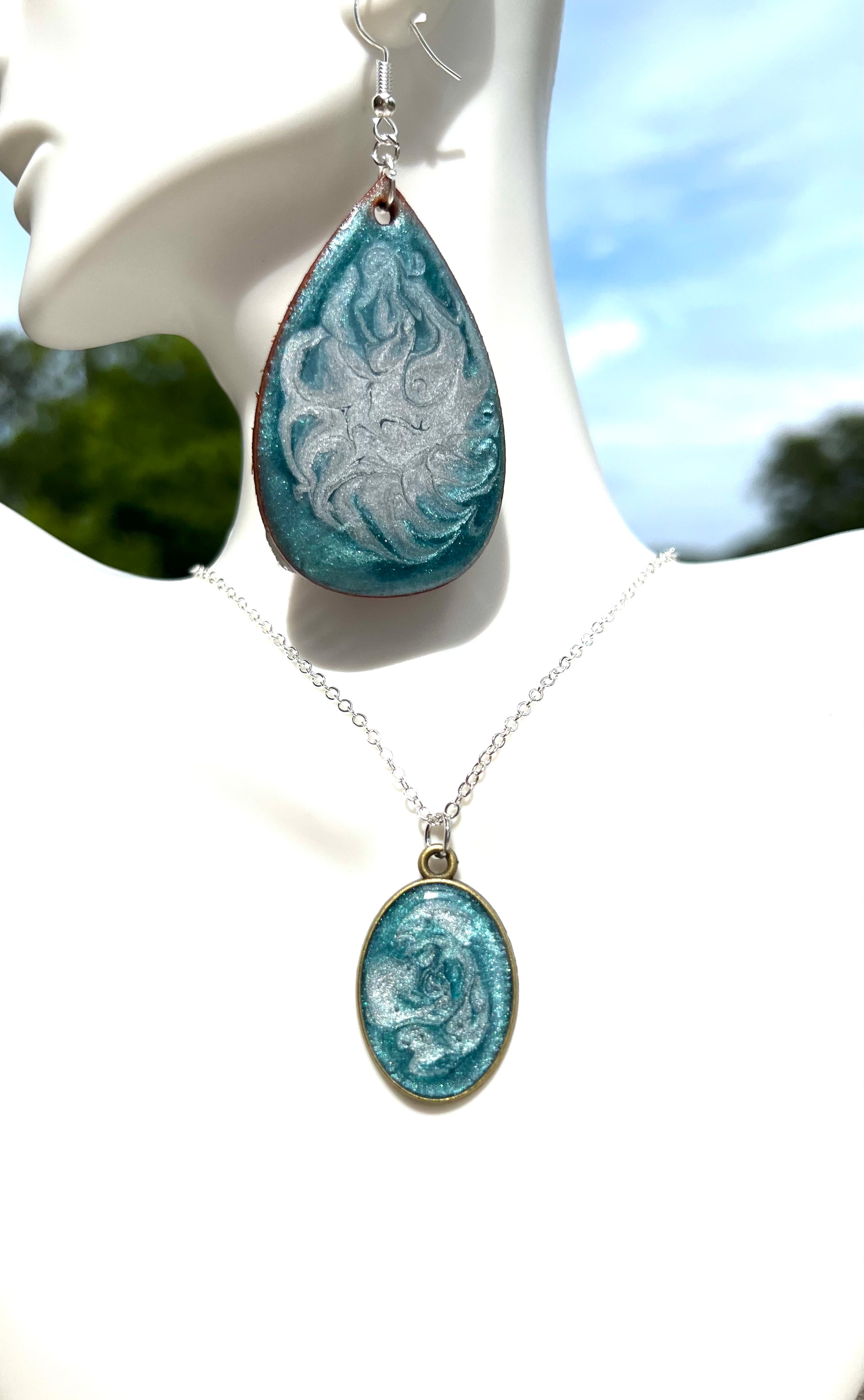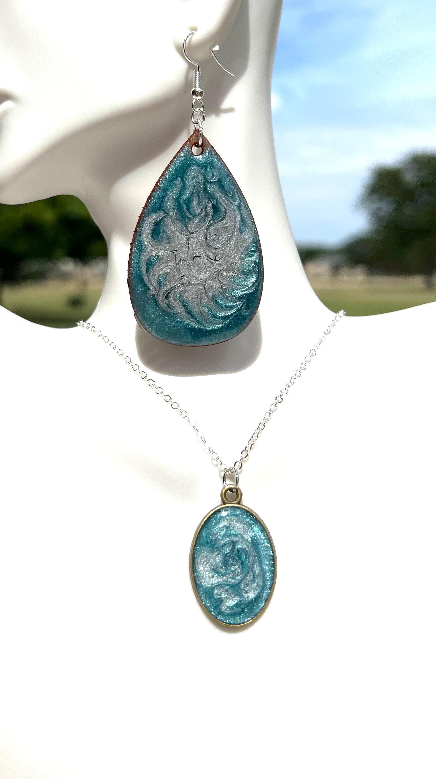 These earrings have a matching necklace that looks lovely together!