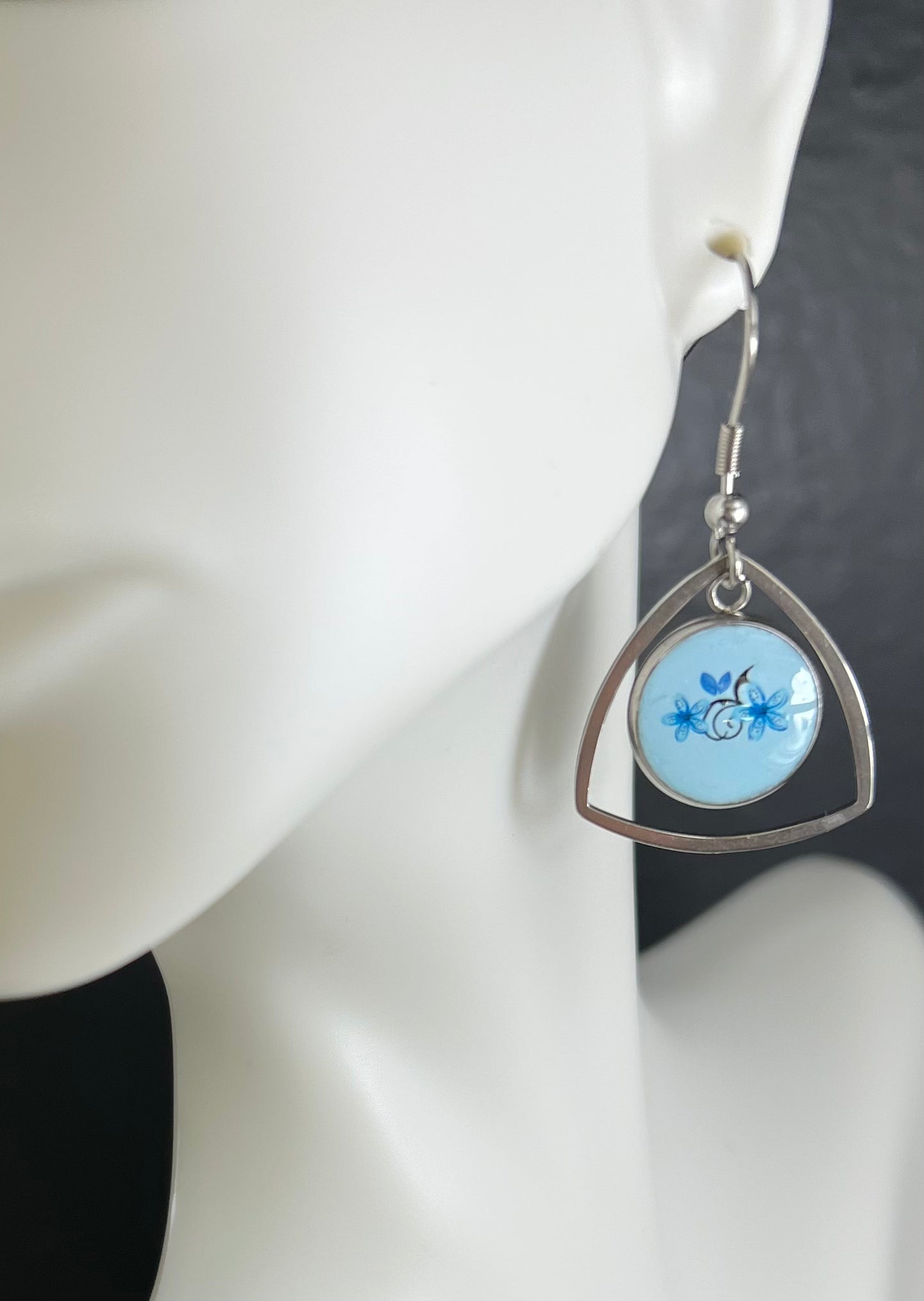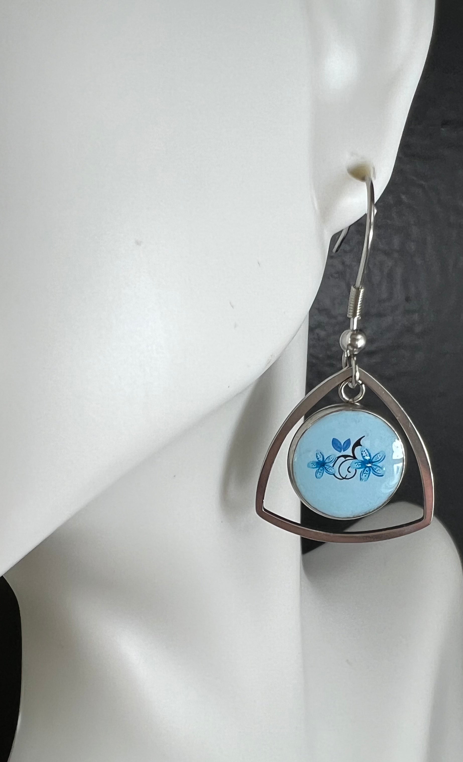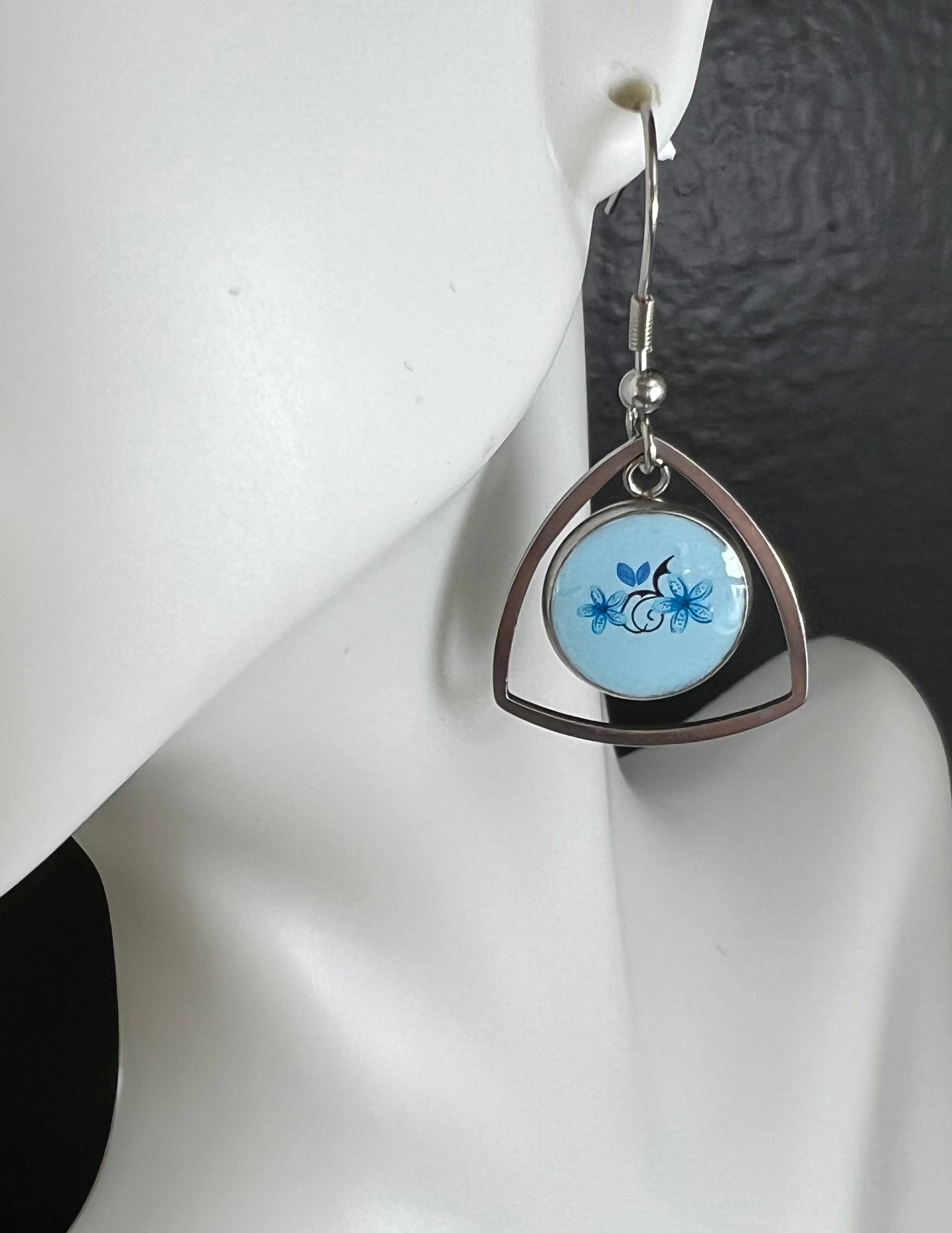 These earrings are an exquisite combination of stainless steel and a beautiful light blue epoxy pendant with a stunning design, handmade for a luxurious look. Perfect for adding a touch of elegance to any outfit.