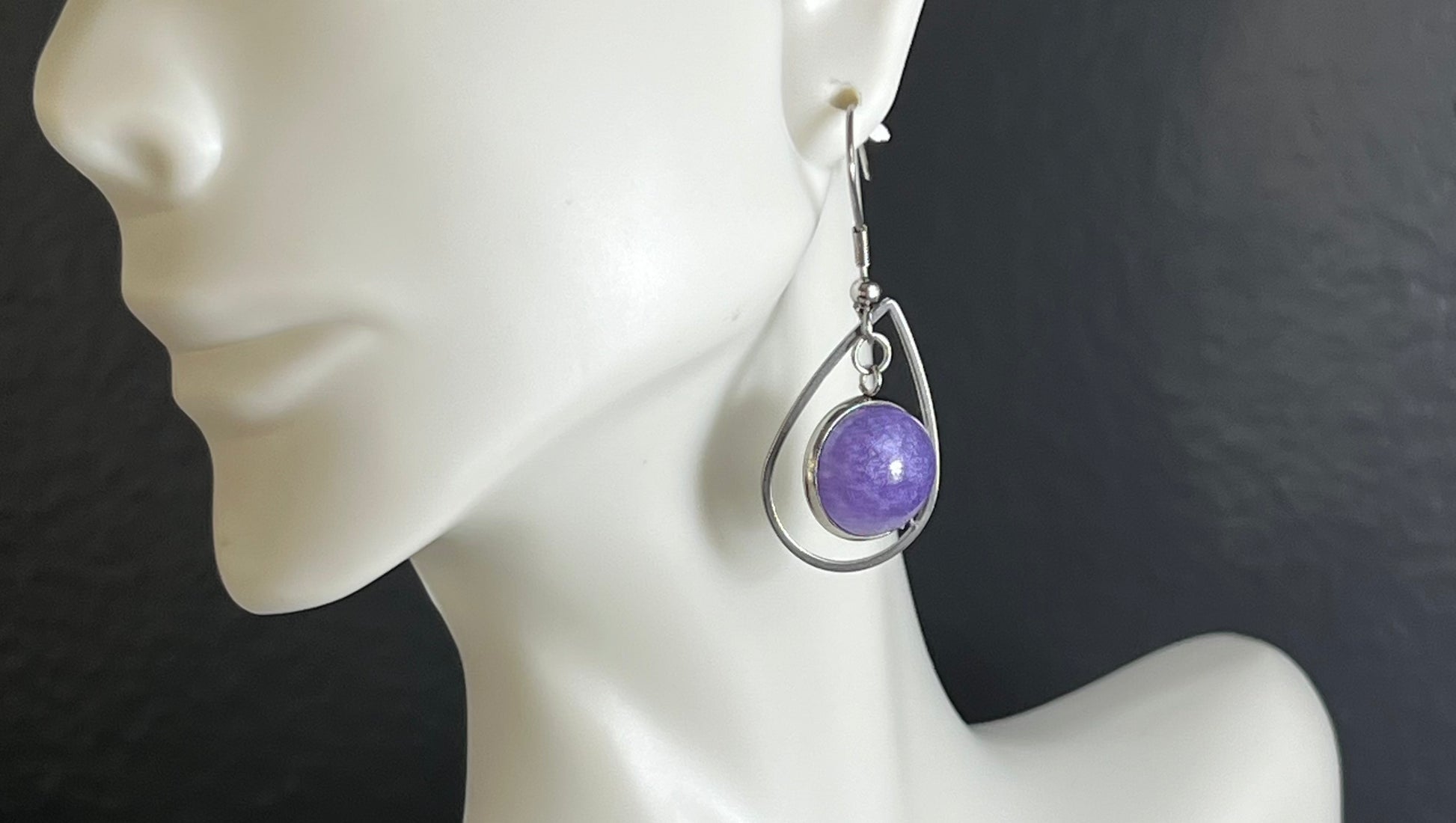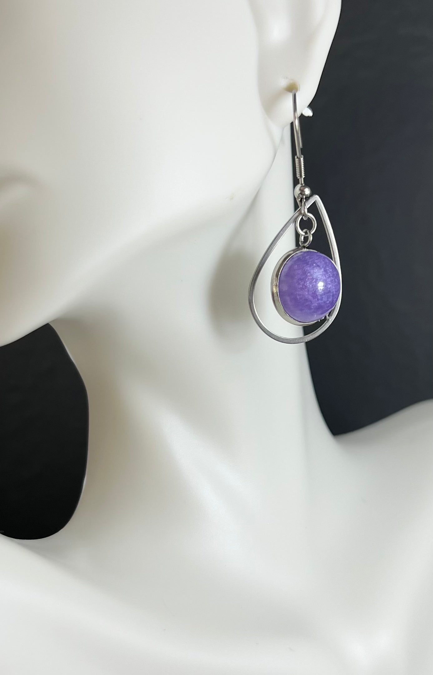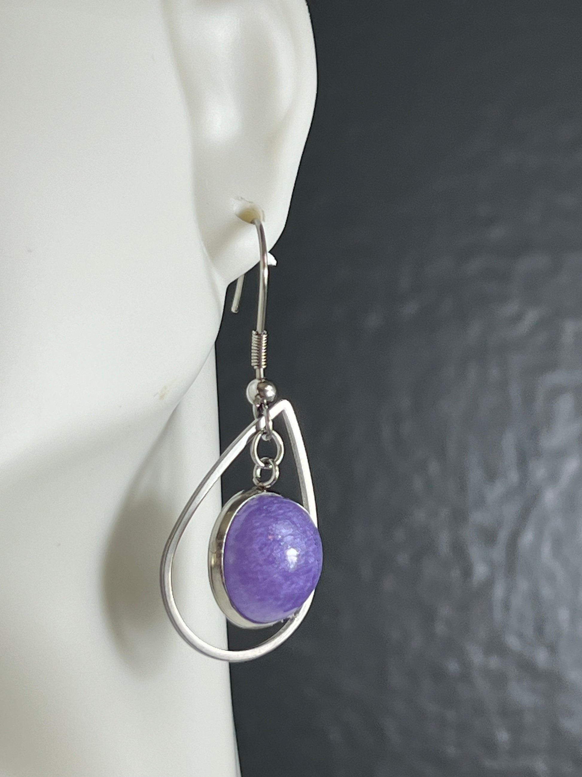 These stunning earrings are the perfect accessory to elevate your look. Crafted with stainless steel and a beautiful handmade purple epoxy gem, they are sure to be a conversation starter. The stainless steel ensures a lifelong use which guarantees you will be wearing these earrings for years to come.