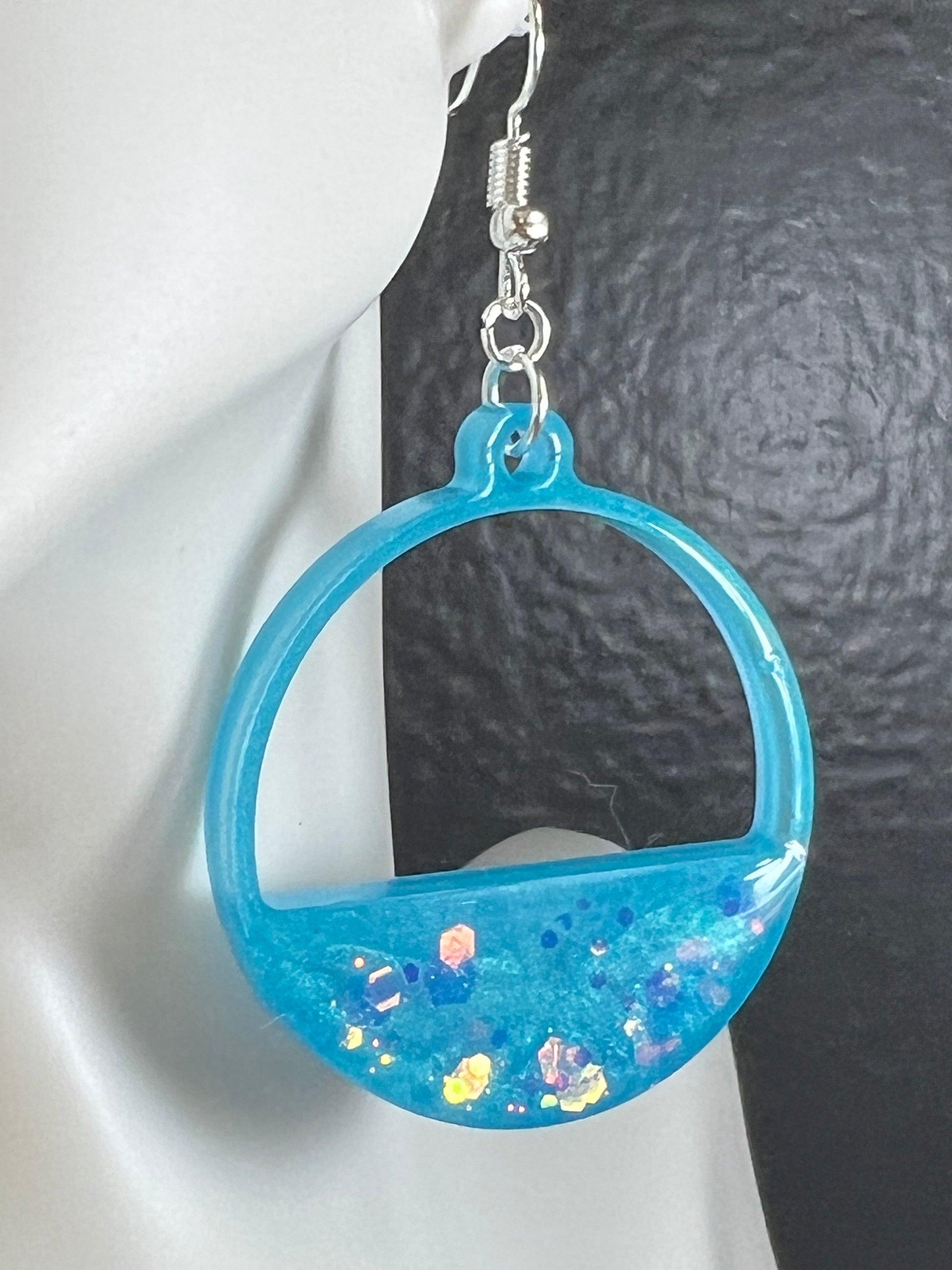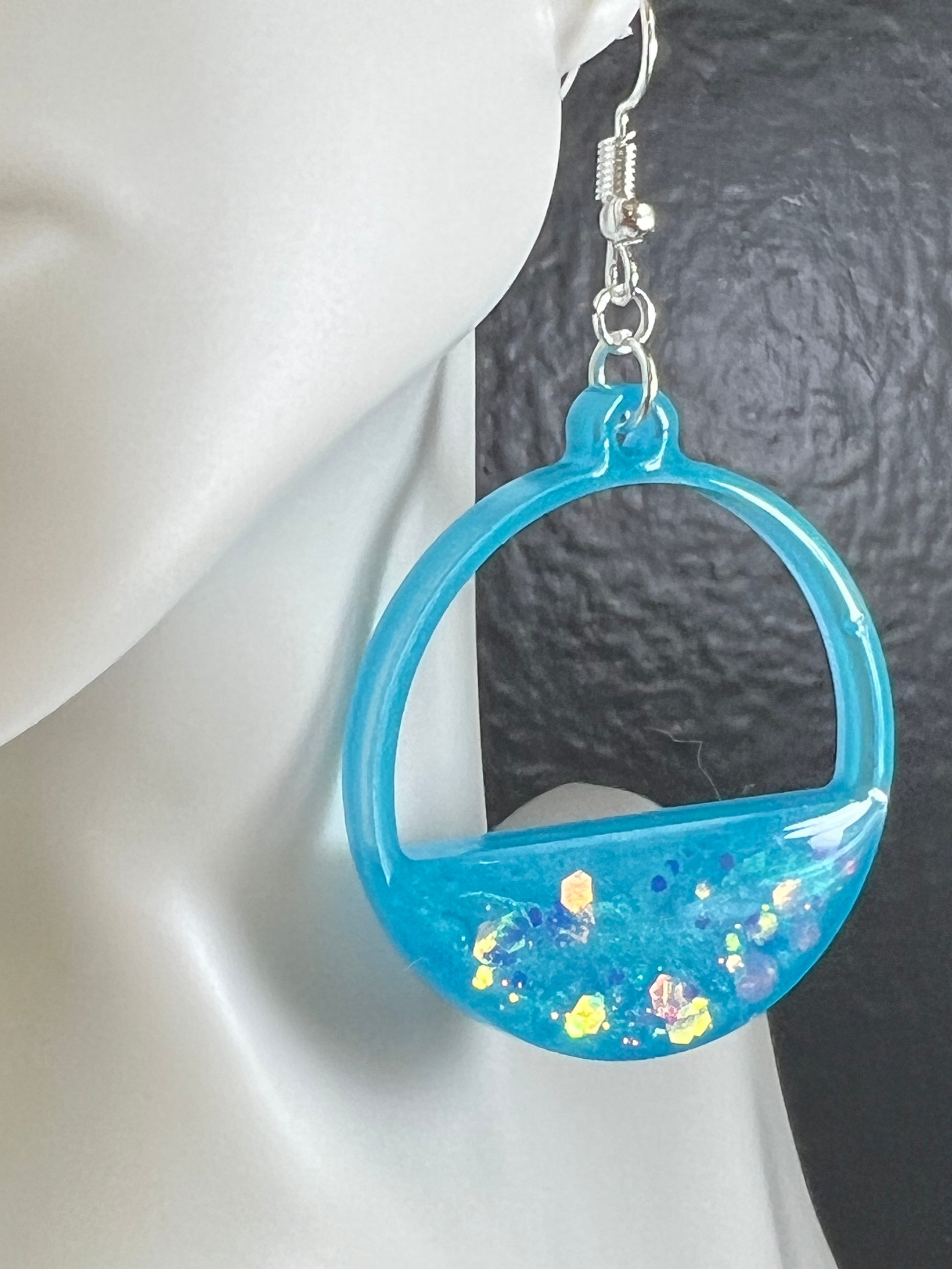 These handmade earrings offer a unique look with a beautiful ocean blue opal affect. Crafted with the utmost attention to detail, they are sure to make a statement. Show off your unique style and make a lasting impression.