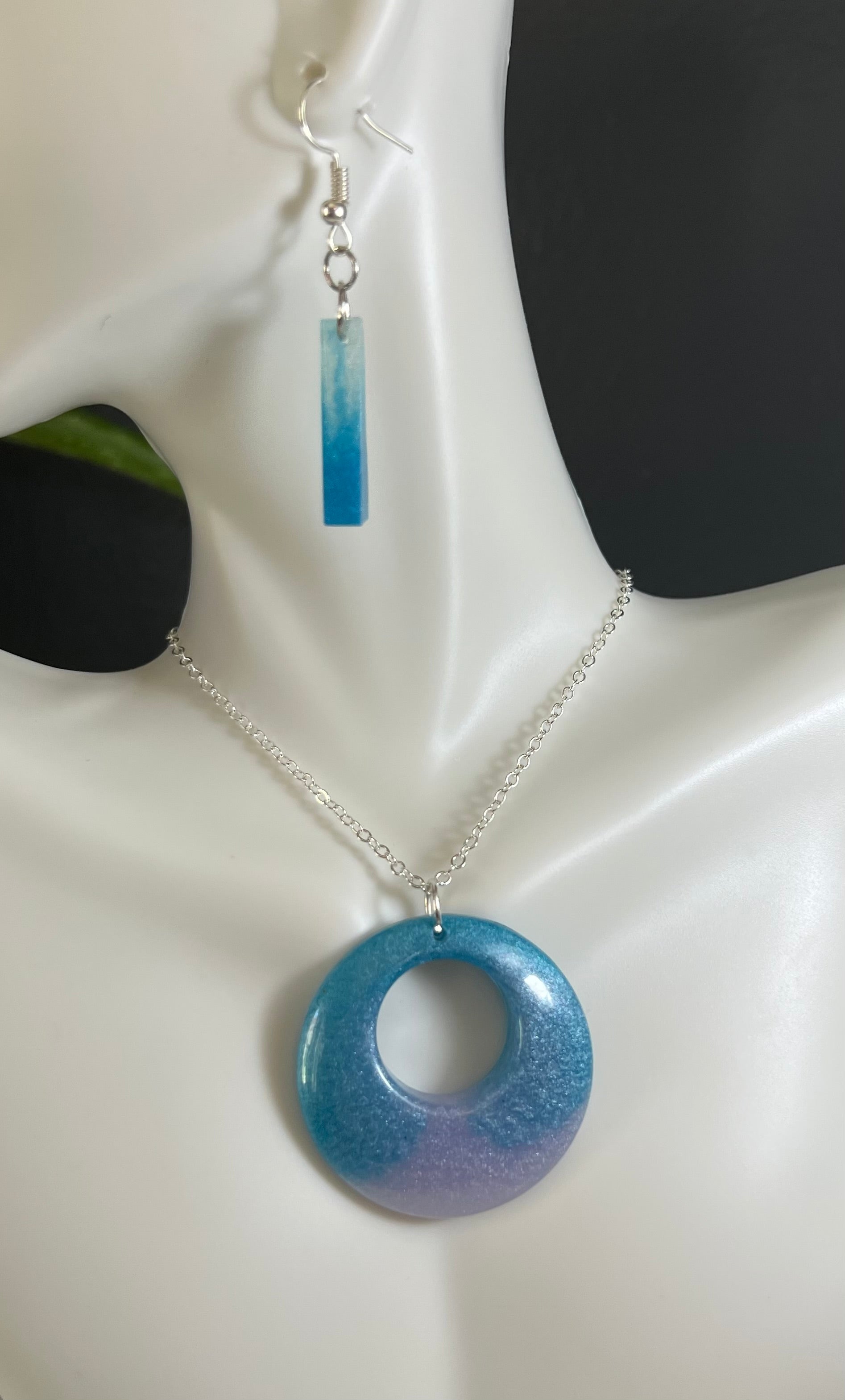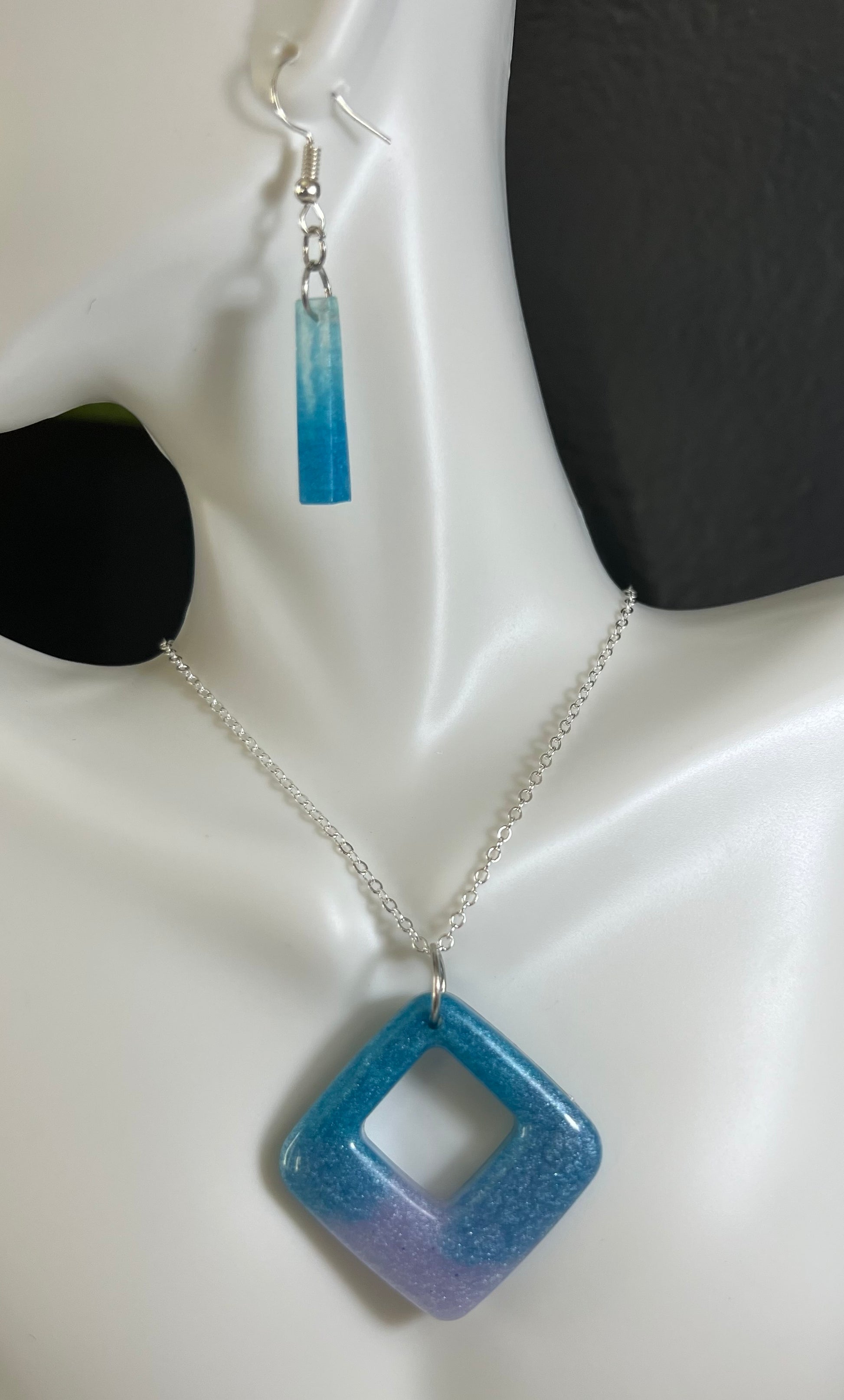 Add a pop of color to your look with these epoxy earrings. They feature a dazzling array of sparkling blue shades for a unique, eye-catching effect. Perfect for casual or formal occasions.