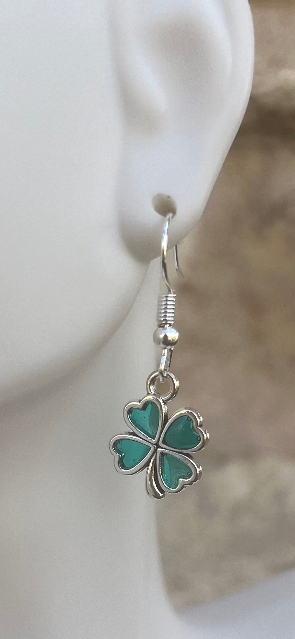 Add a touch of luck and love to your outfit with our Four Leaf Clover Shamrock earrings. These earrings are not only a symbol of good luck, but also of pure love and happiness. Perfect for St. Patrick's Day or any day you want to spread some positivity. Made of high-quality epoxy and colorant, these green earrings are sure to make a statement.
