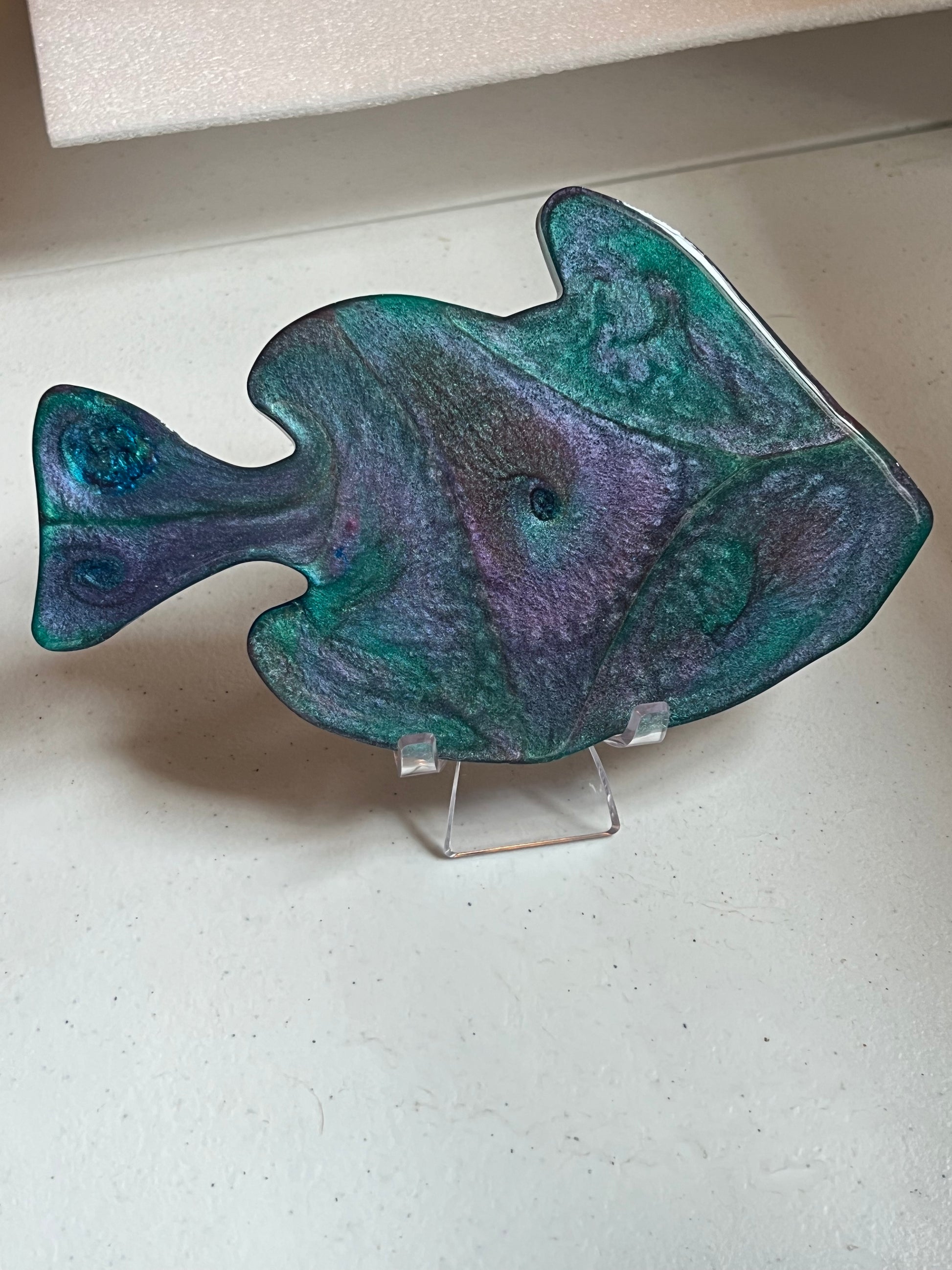 Add a touch of uniqueness to your home with our Fish Home Decor. Handmade with exquisite epoxy, this fish features stunning swirls of gorgeous greens and pinks. The result? A one-of-a-kind piece of art that will elevate your interior design. Don't miss out on this beautiful home decor.