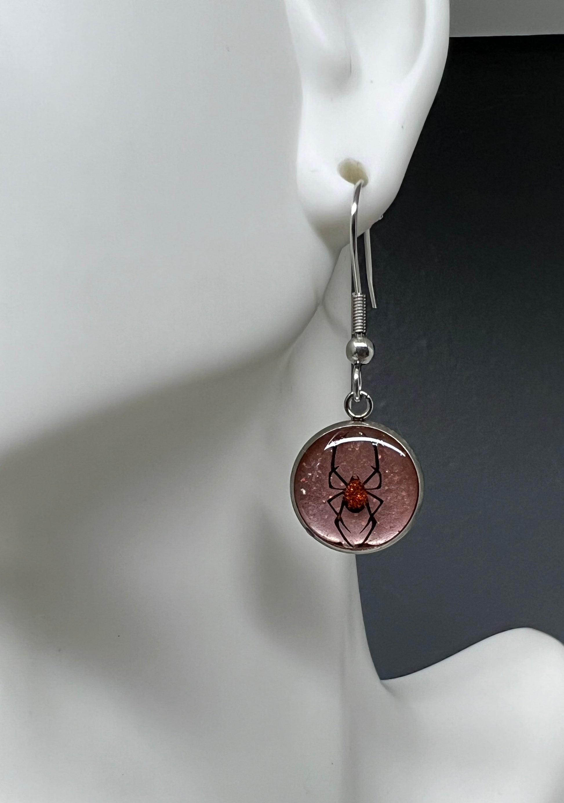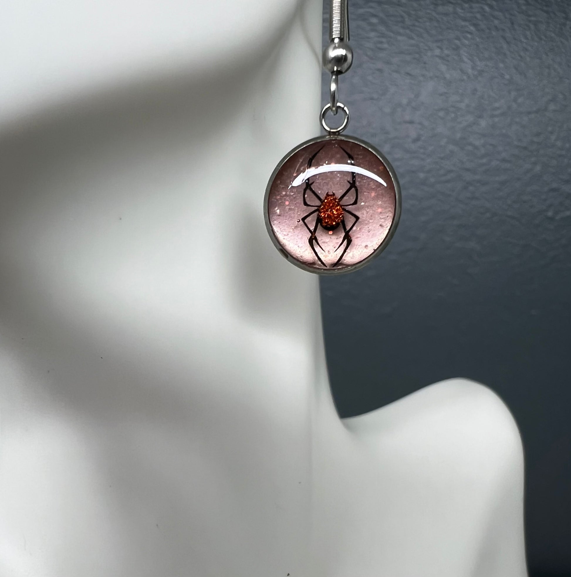 These Halloween earrings are made with epoxy and glitter, giving them a unique and eye-catching design. Crafted with durable stainless steel, these adorable spider earrings are sure to catch attention at any Halloween event. Add a touch of spooky charm to any outfit with these fun and festive earrings.