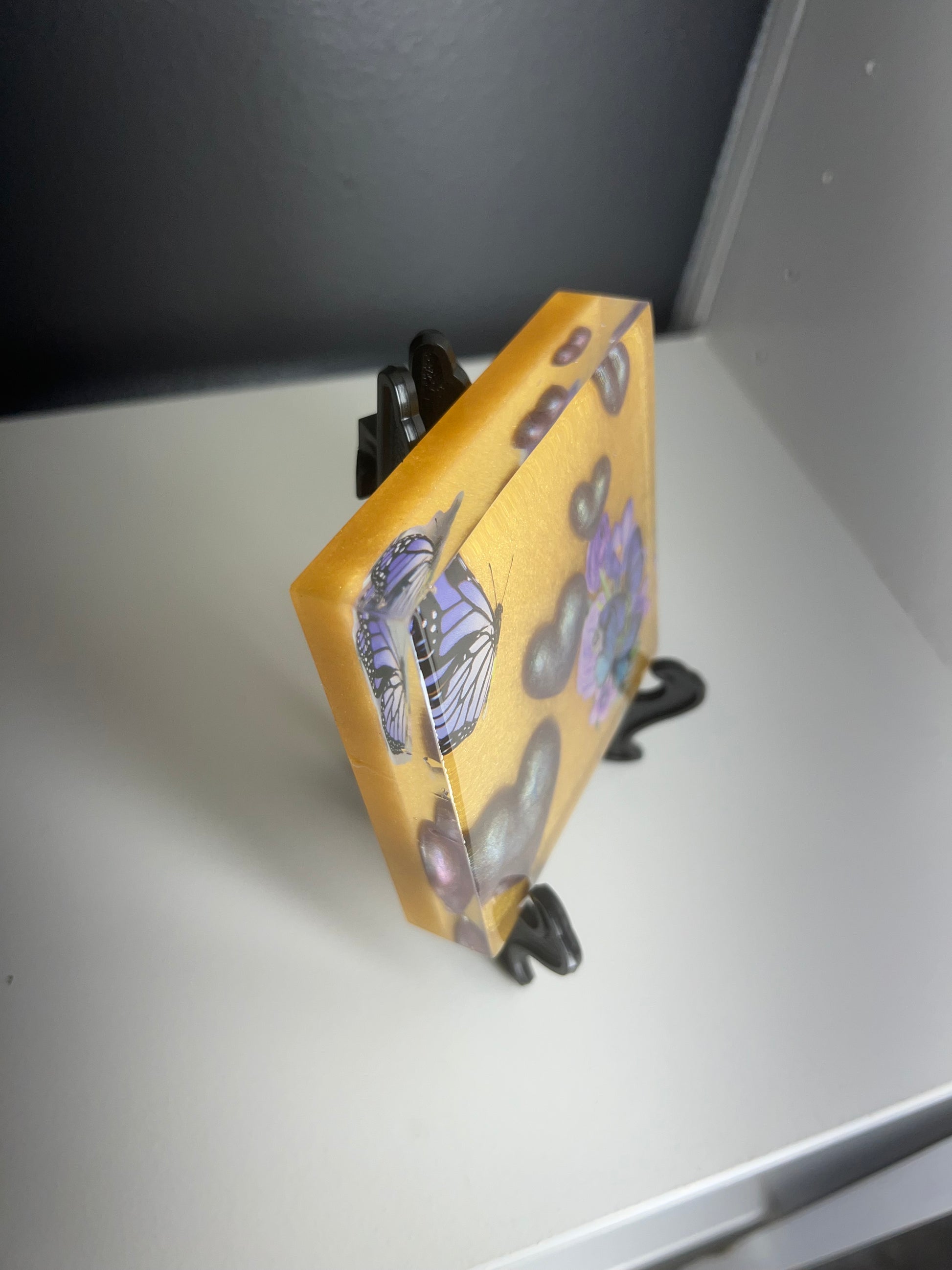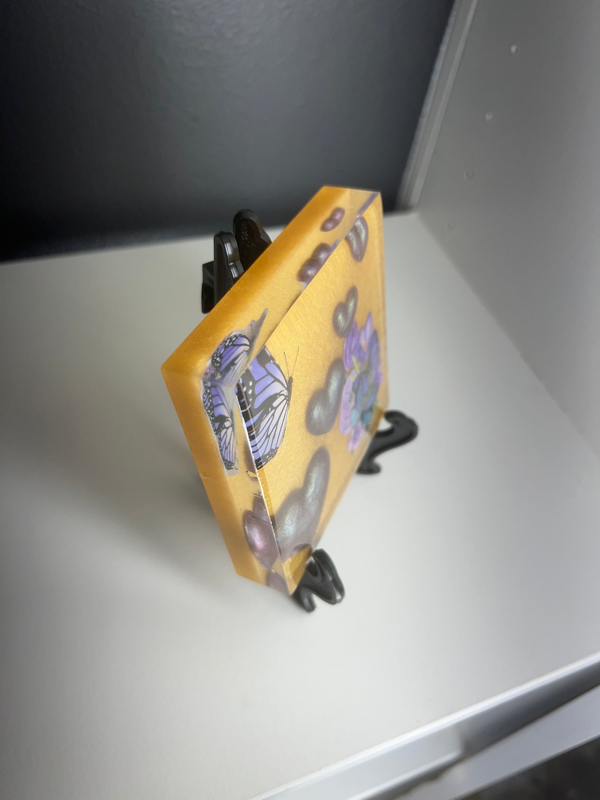 Please note-Every piece of art is handmade and I do my absolute best to create a perfect piece. However, due to the nature of resin small imperfections like bubbles, dust, divots, etc may occur. Do not leave in direct sun or extreme heat.