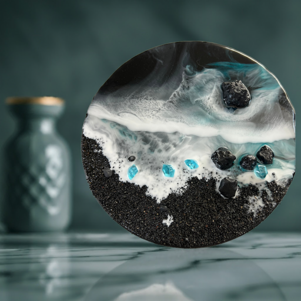This unique Iceland Beach Wall Art is a one of a kind piece made with epoxy resin, giving it a realistic look of the stunning beach in Iceland. Featuring beautiful waves and brilliant colors, this piece will bring a touch of nature into any space.