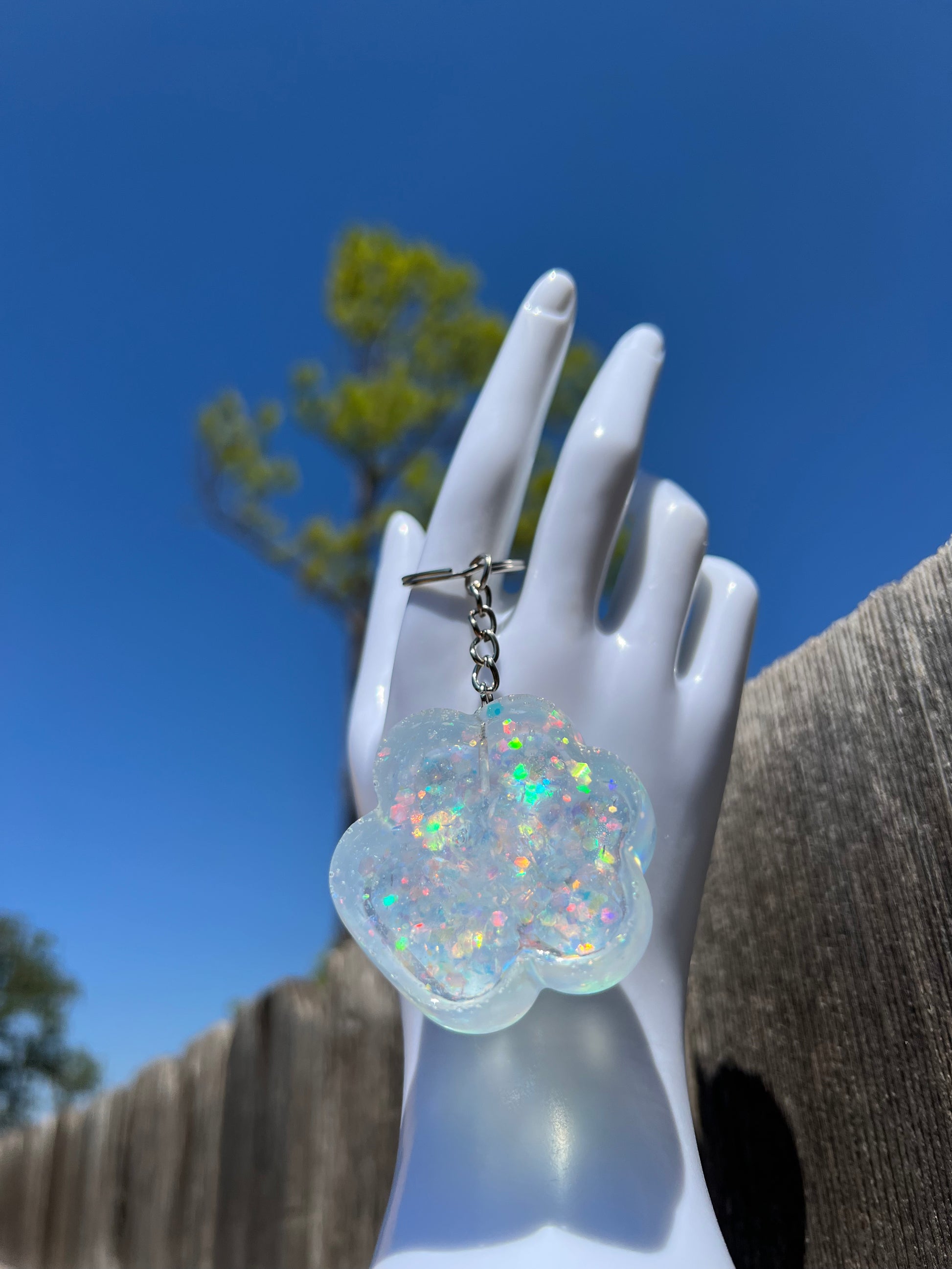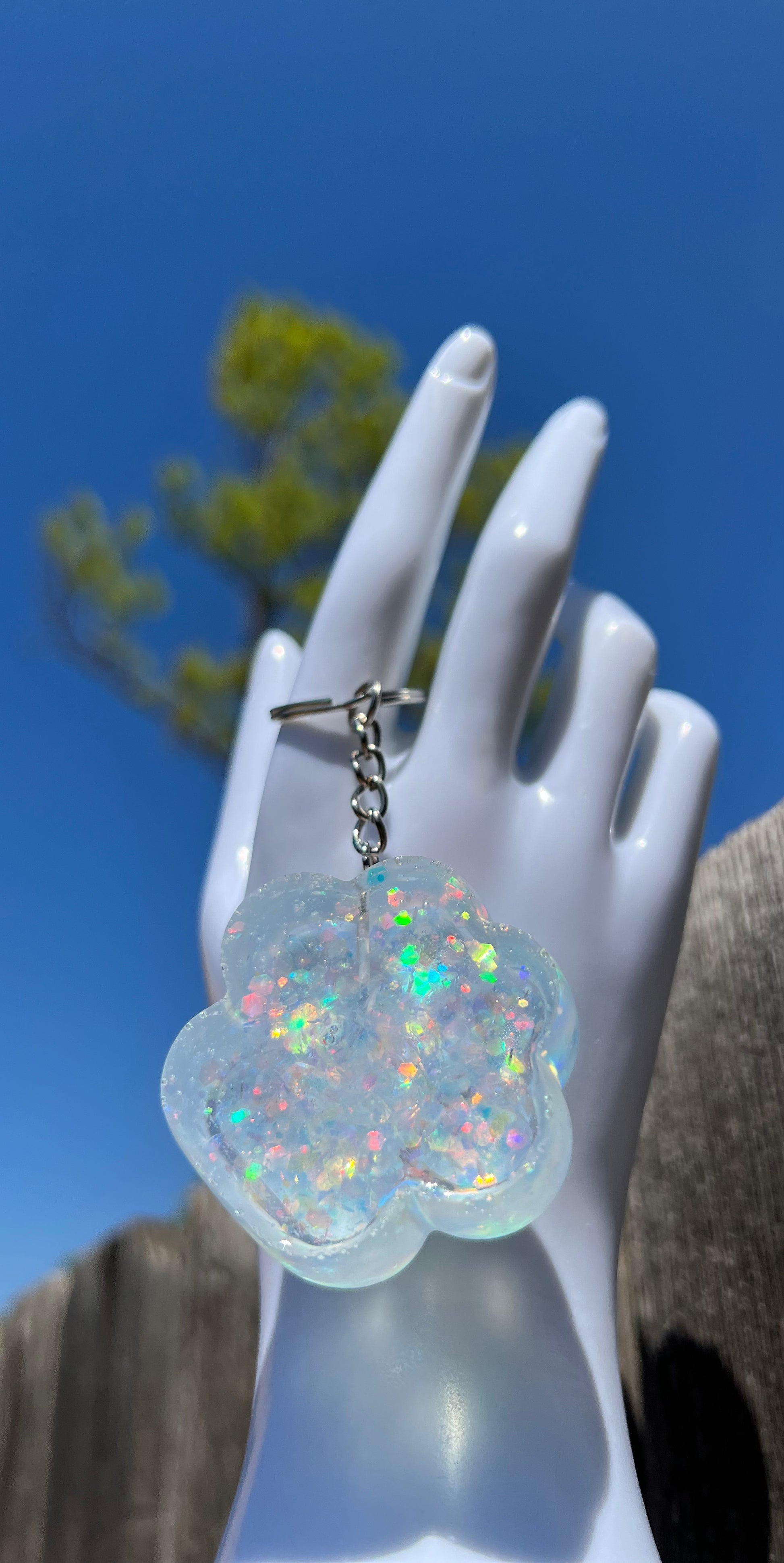 This Keychain is the perfect way to bring your keys to life with an adorable paw design. Each piece is handmade with epoxy and features a light blue finish with a sparkling opal, adding an extra touch of shine to your accessories.