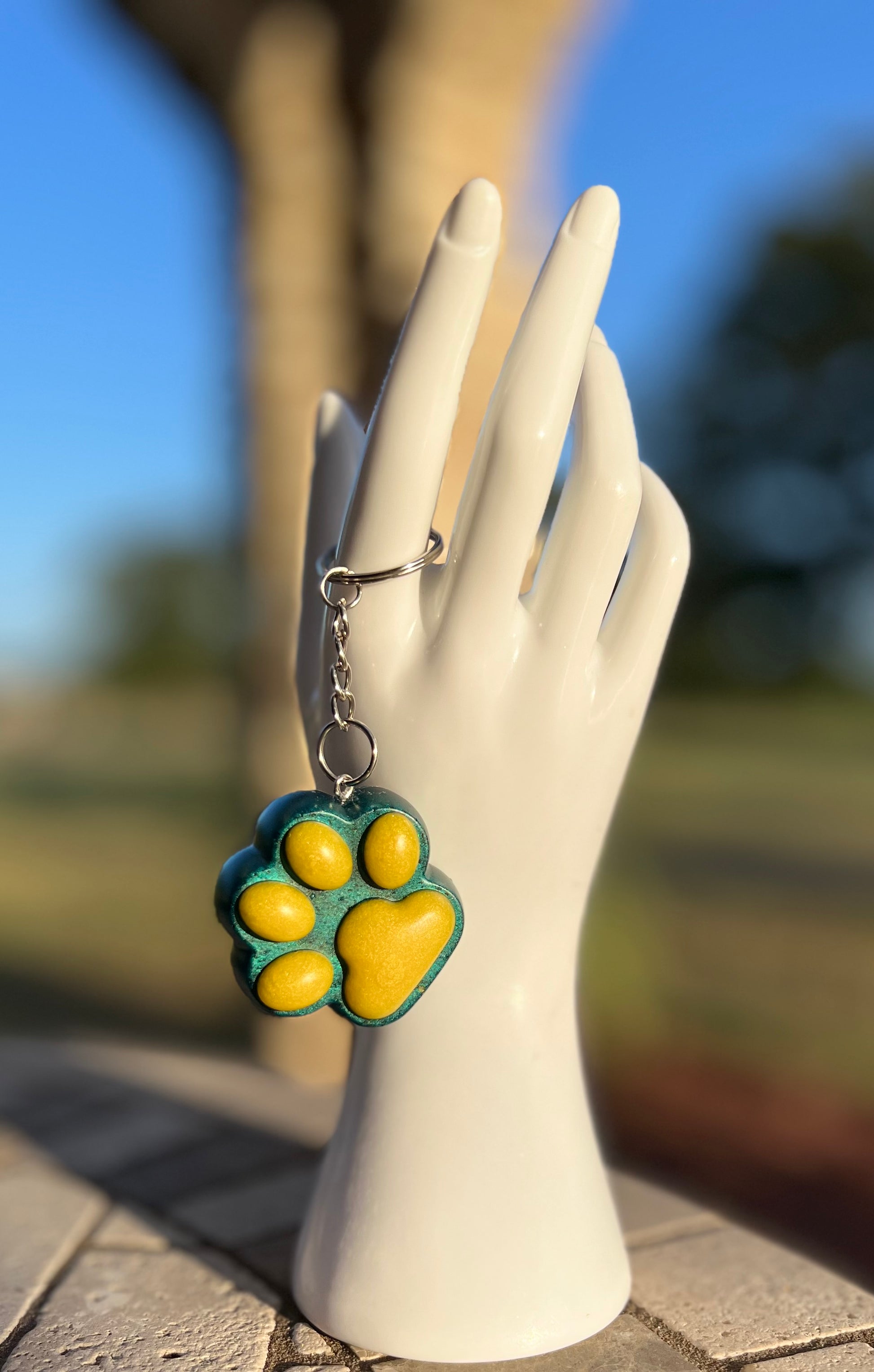This Keychain-College Football is the perfect accessory for any Oregon Ducks fan. Show your support with the official school colors of green and yellow featured on the handmade paw keychain. The epoxy-covered surface ensures it will remain undamaged in the most rigorous of activities - for ultimate durability. Get yours today!
