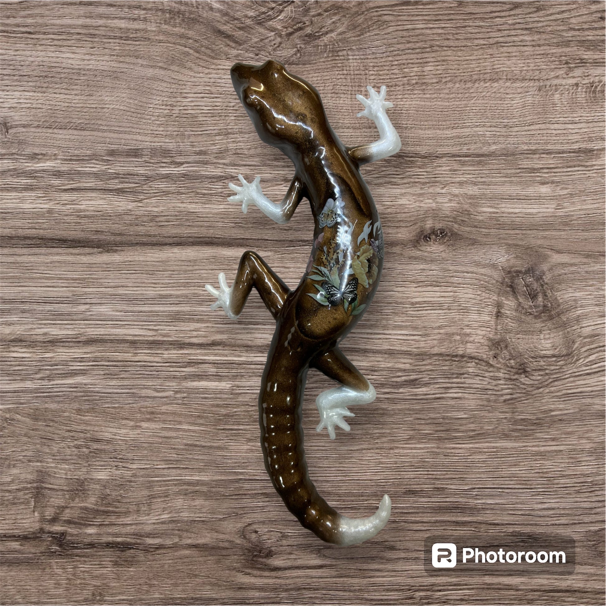 Elevate your home decor with our one of a kind Lizard. This stunning handmade piece, crafted with epoxy resin, showcases a beautiful flower design on its back in stunning brown with white accents. Add a touch of nature and start conversations with this gorgeous lizard home decor.