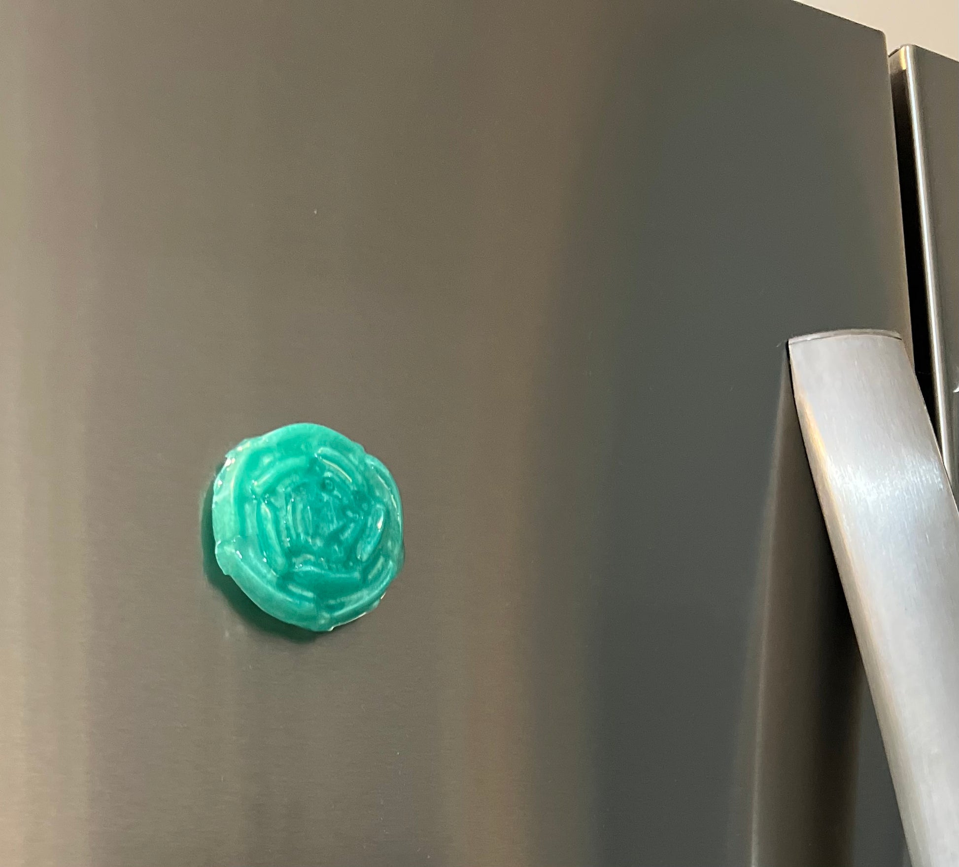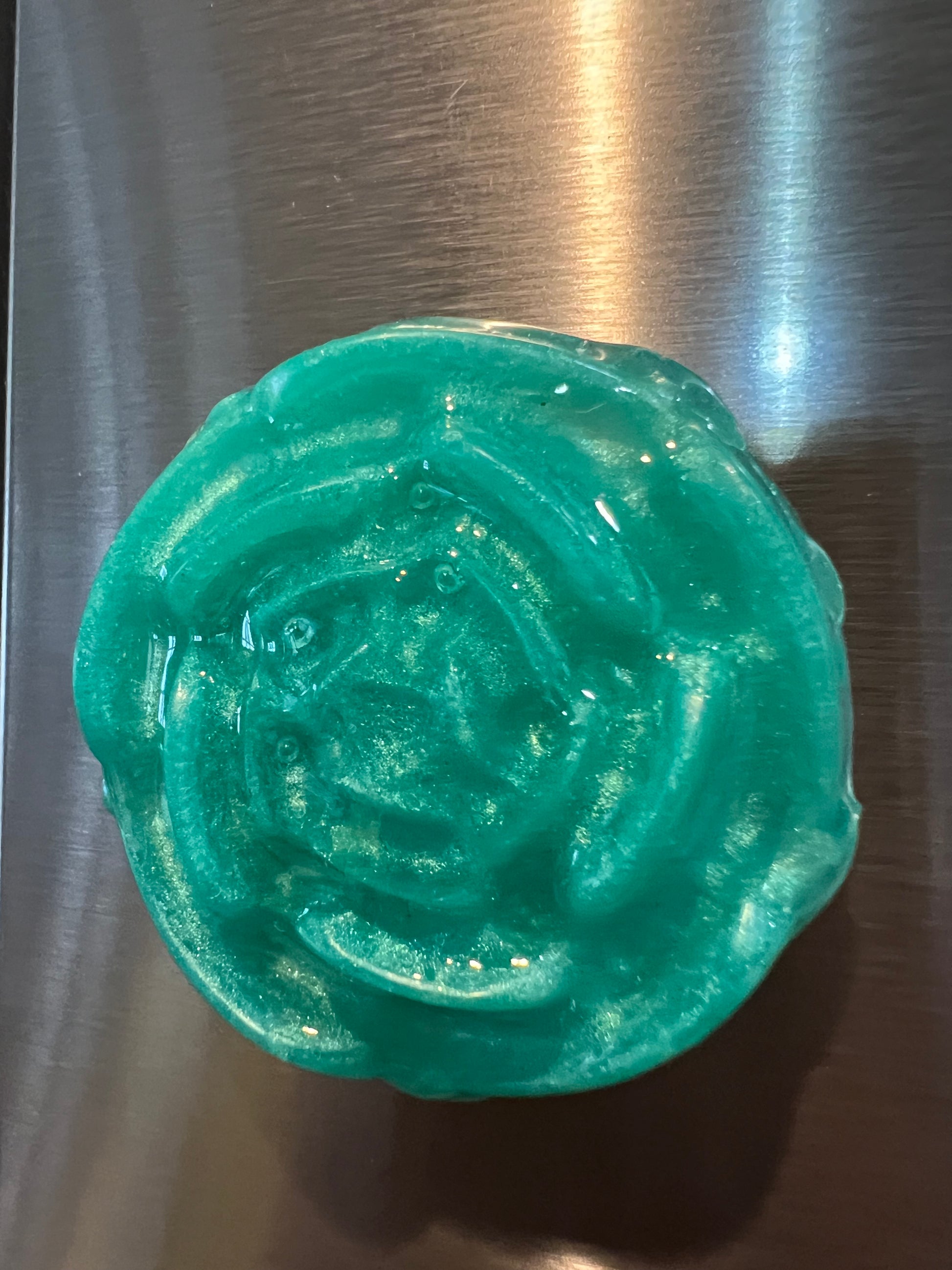 The flower magnet is perfect for decoration and organization. Made with epoxy and a powerful magnet, this beautiful handmade green flower will make any surface more stylish and organized.
