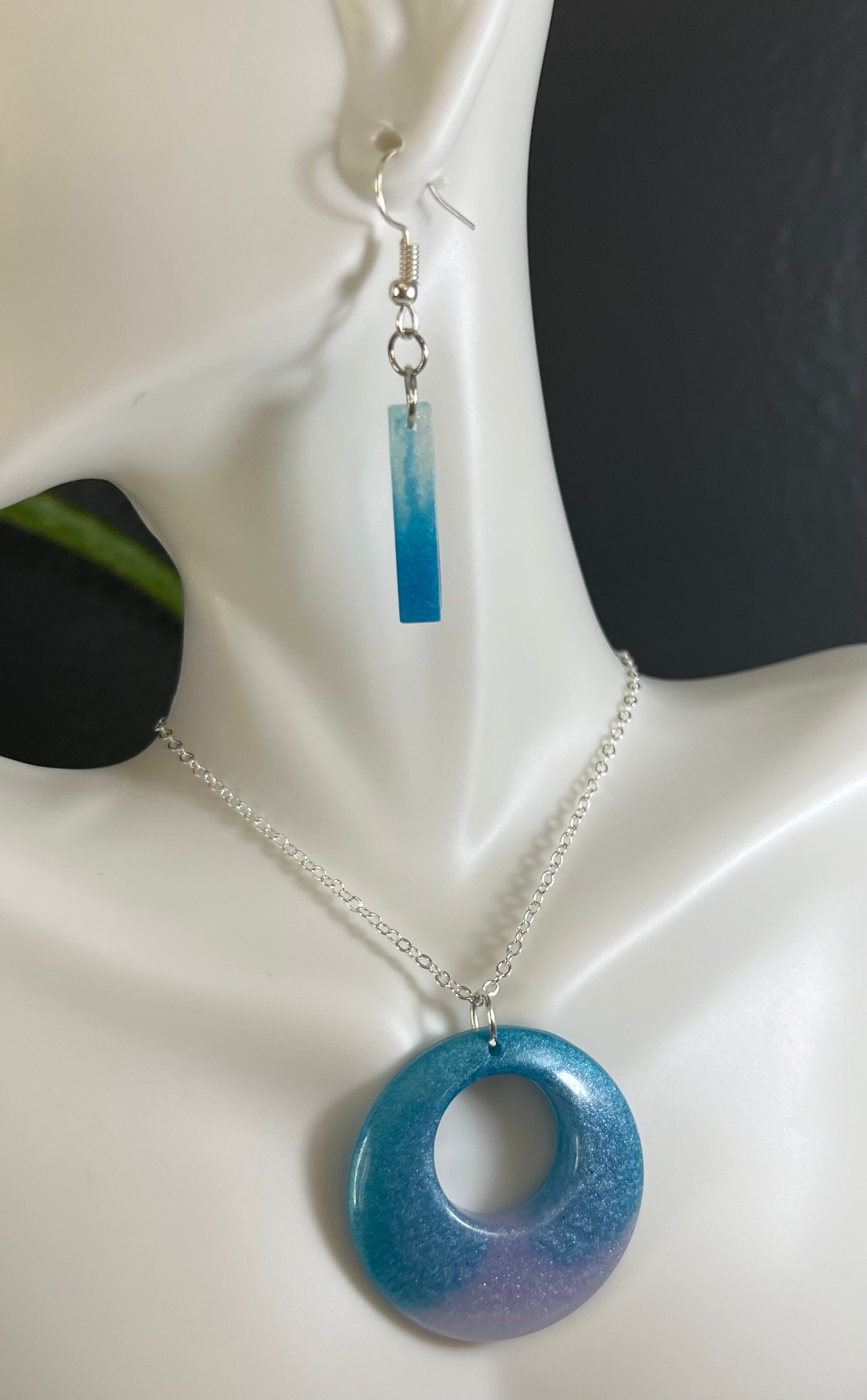 This epoxy necklace features light blue and soft pink for a tranquil yet stylish look. It's the perfect accessory for everyday wear and is sure to add a touch of sophistication to any outfit.