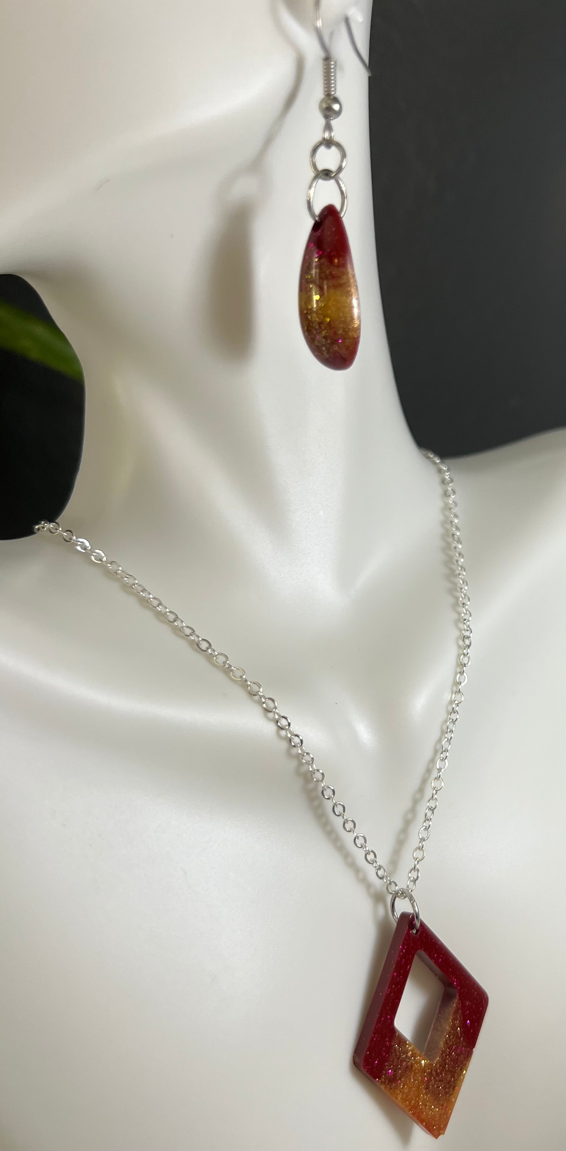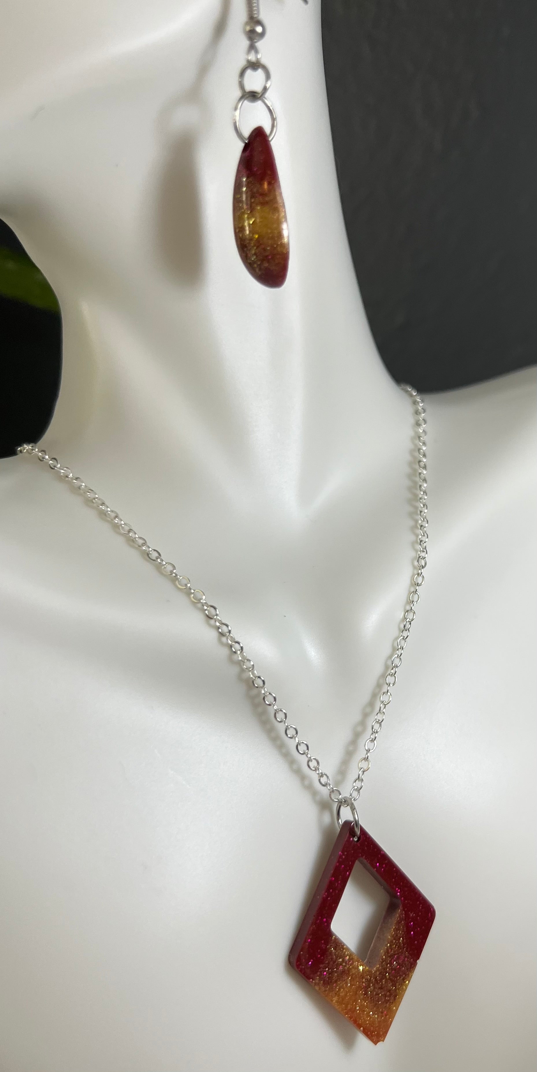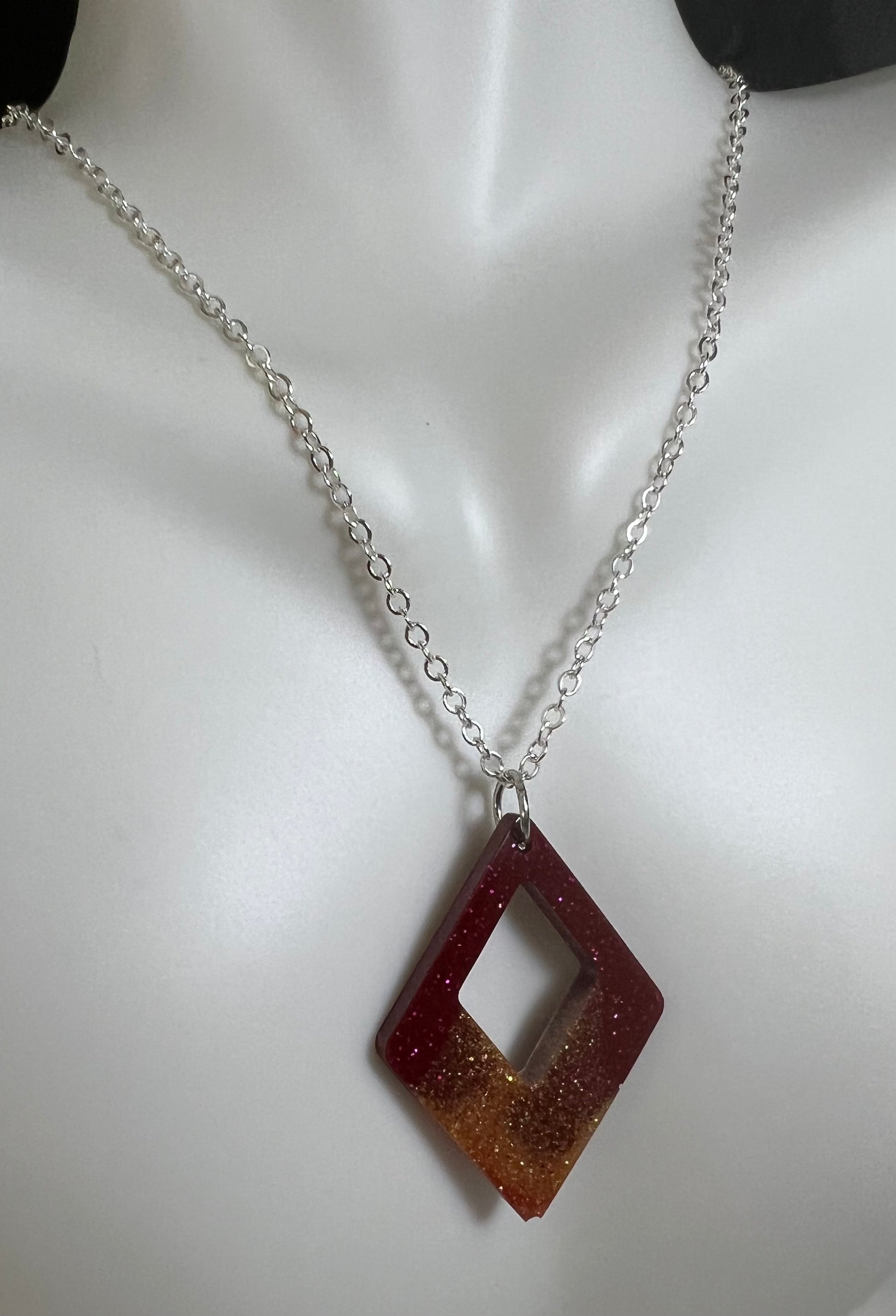 This unique necklace features a maroon and gold epoxy design with a handmade appearance. Its classic colors make it the perfect accessory to virtually any outfit. Crafted with quality materials, it's guaranteed to last through years of wear.