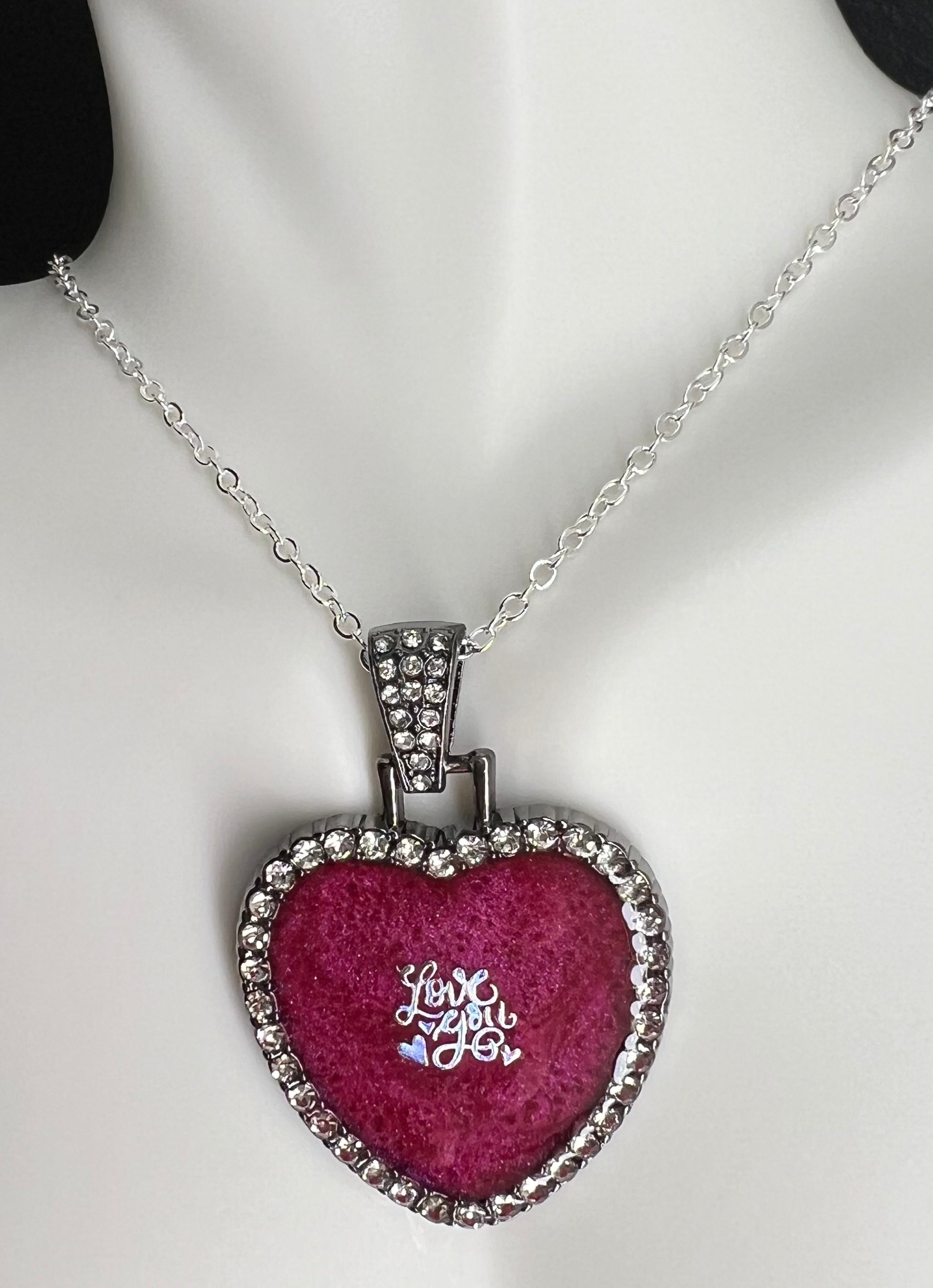 This elegant necklace features a stunning heart-shaped pendant made with red epoxy and adorned with sparkling rhinestones. Perfect for any occasion, it adds a touch of romance and sophistication to any outfit. Display your love and style with this beautiful Valentine's necklace.