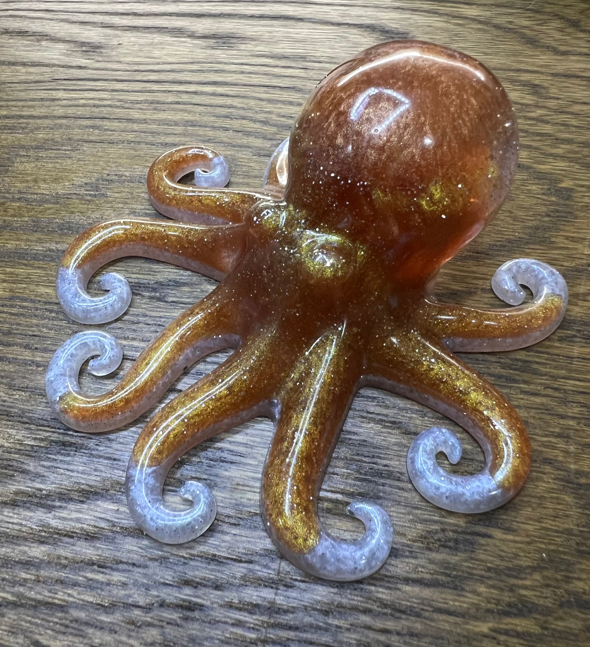 Add a touch of charm to your office or home decor with our expertly crafted epoxy resin octopus. Its vibrant colors are sure to brighten up any space, making it perfect for ocean lovers.