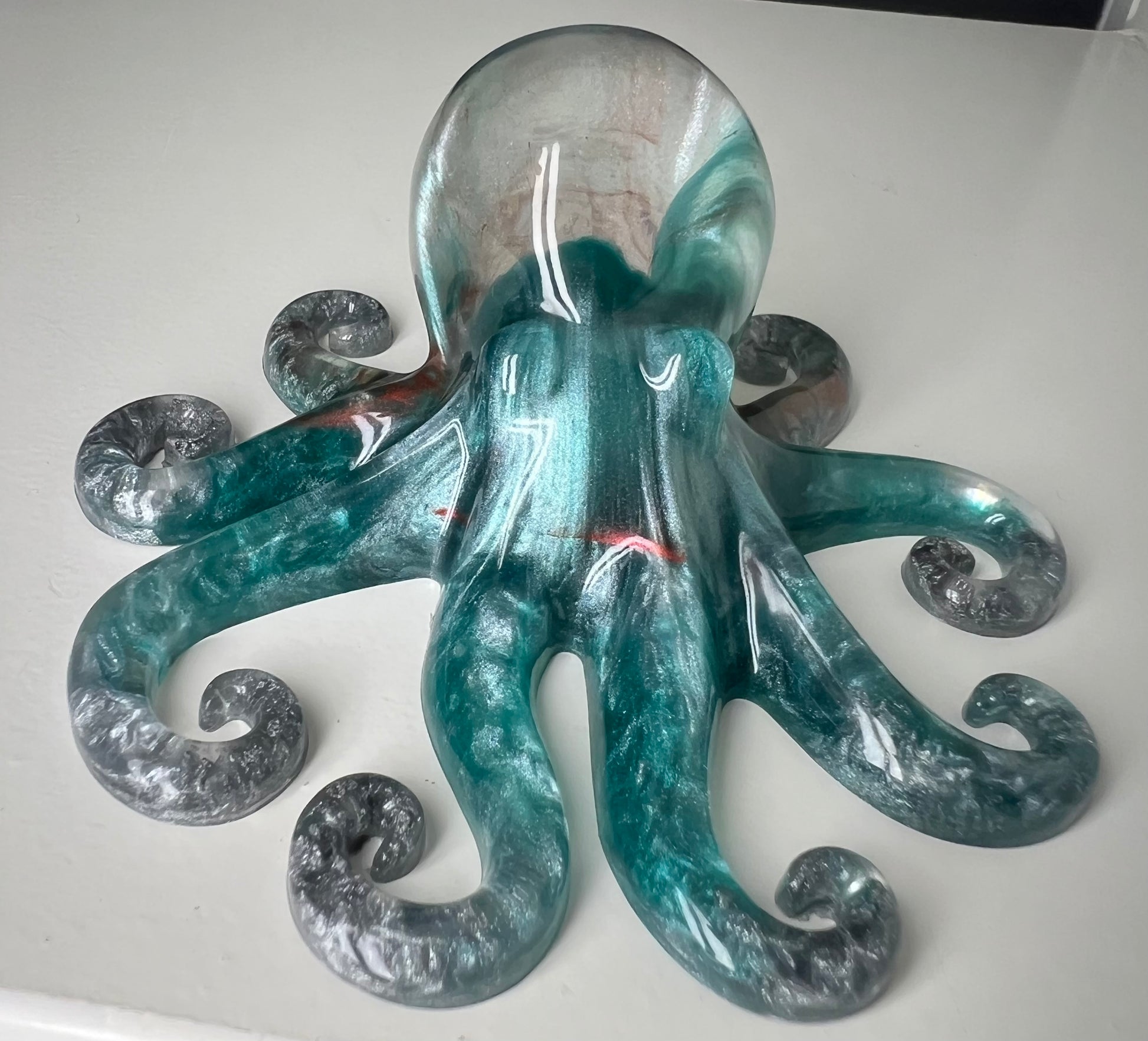 Discover the unique beauty of our one-of-a-kind octopus, handcrafted with epoxy for stunning colors that dance. With its intricate design, this conversation piece will surely captivate and intrigue. Perfect for any marine enthusiast, this handmade octopus is a must-have for your collection.