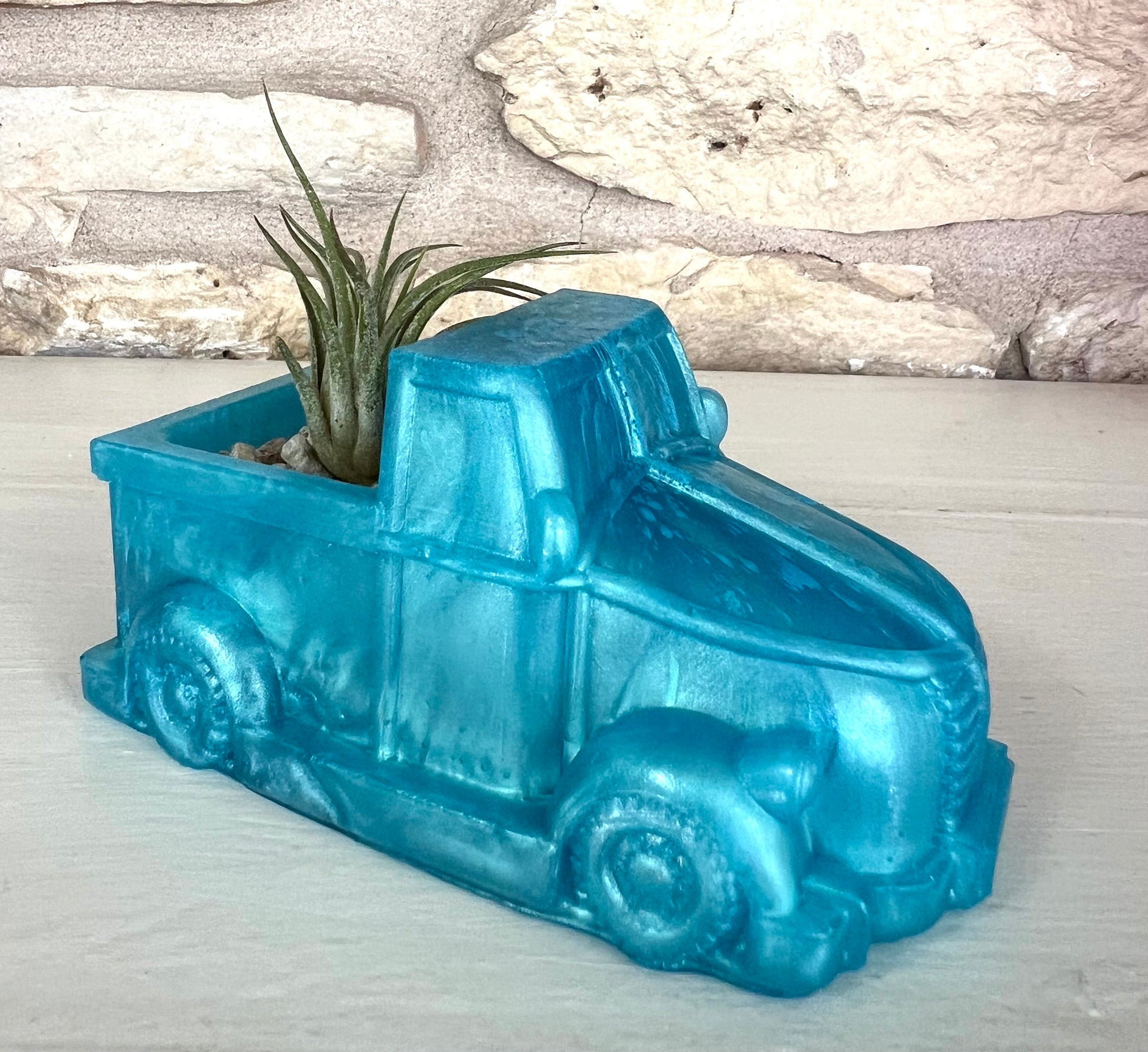 Crafted with high-quality epoxy resin, this Old Truck Planter-Air Plant is a charming and unique addition to any space. Adorned with an adorable blue old truck design, it comes complete with an air plant for easy maintenance. Customizable colors available upon request. Expertly made to add a touch of whimsy and greenery to your home.