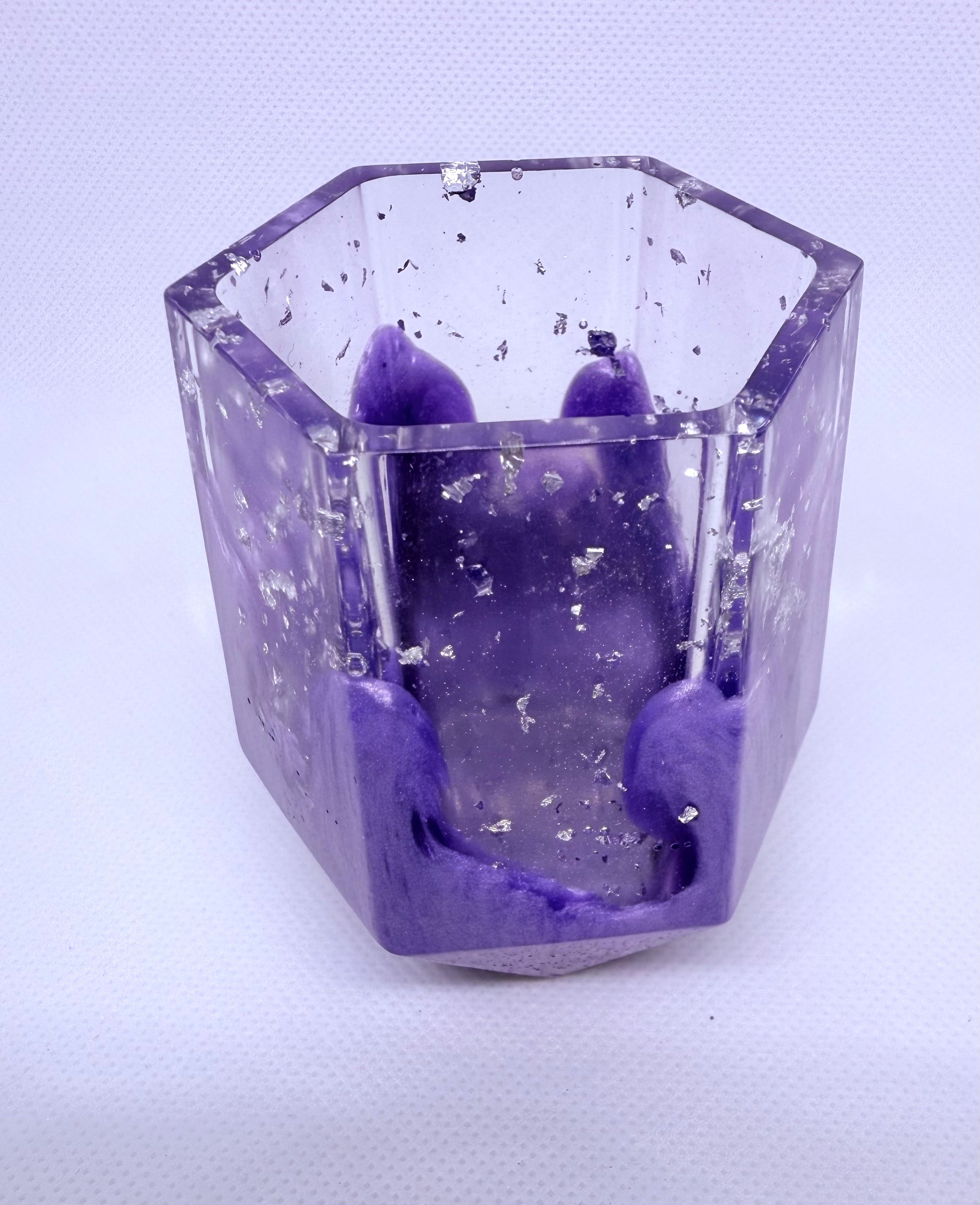 This lightweight Purple & Silver Flake Plant Vase is expertly crafted from epoxy resin, featuring unique artwork with shimmering silver flakes set against a vibrant purple base. Designed specifically as an air plant holder, it offers both aesthetic appeal and practical functionality, making it a sophisticated accent for modern interiors.