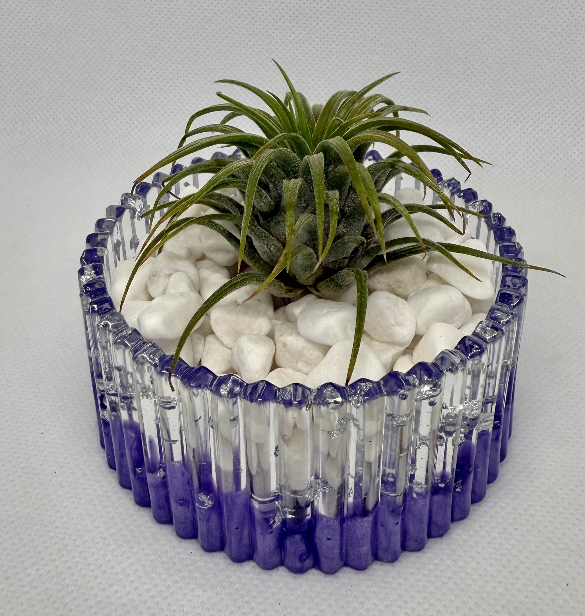 Made from high-quality epoxy resin, this Purple & Silver Plant Holder features a unique blend of purple and clear resin accented with silver flakes. Its distinctive design complements any room, offering a stylish and elegant way to display your plants while enhancing your space with a touch of sophistication.