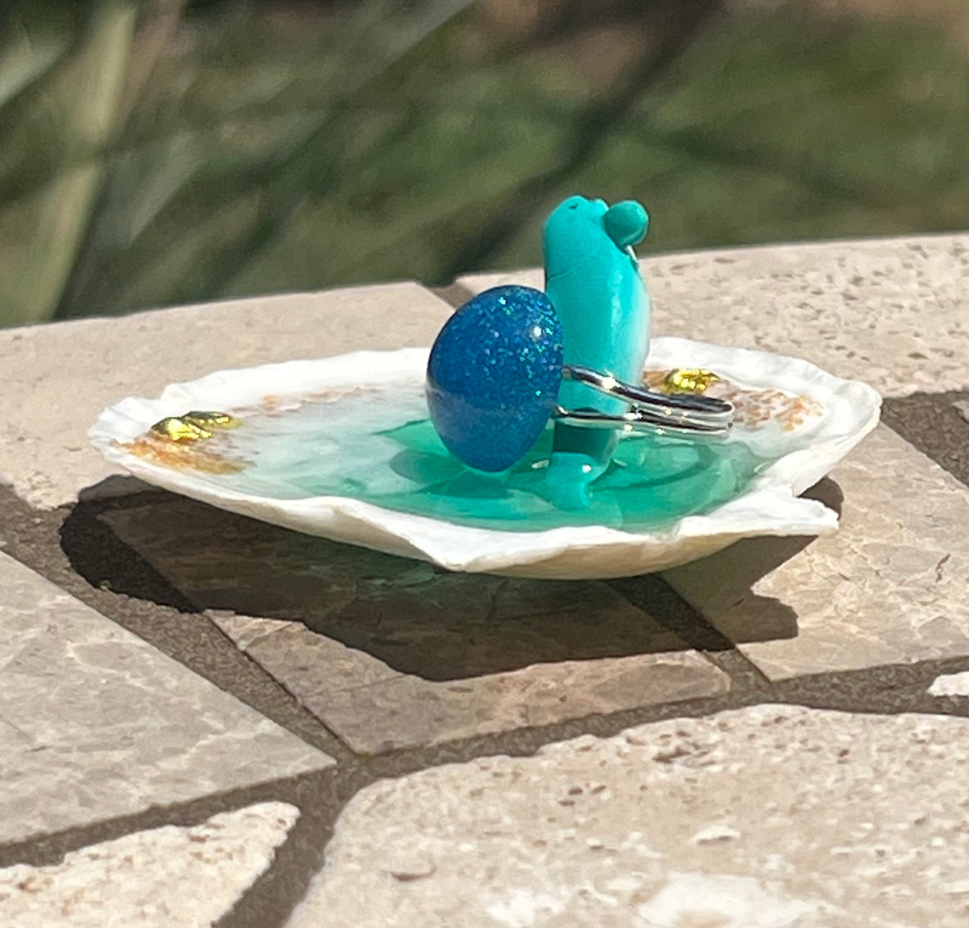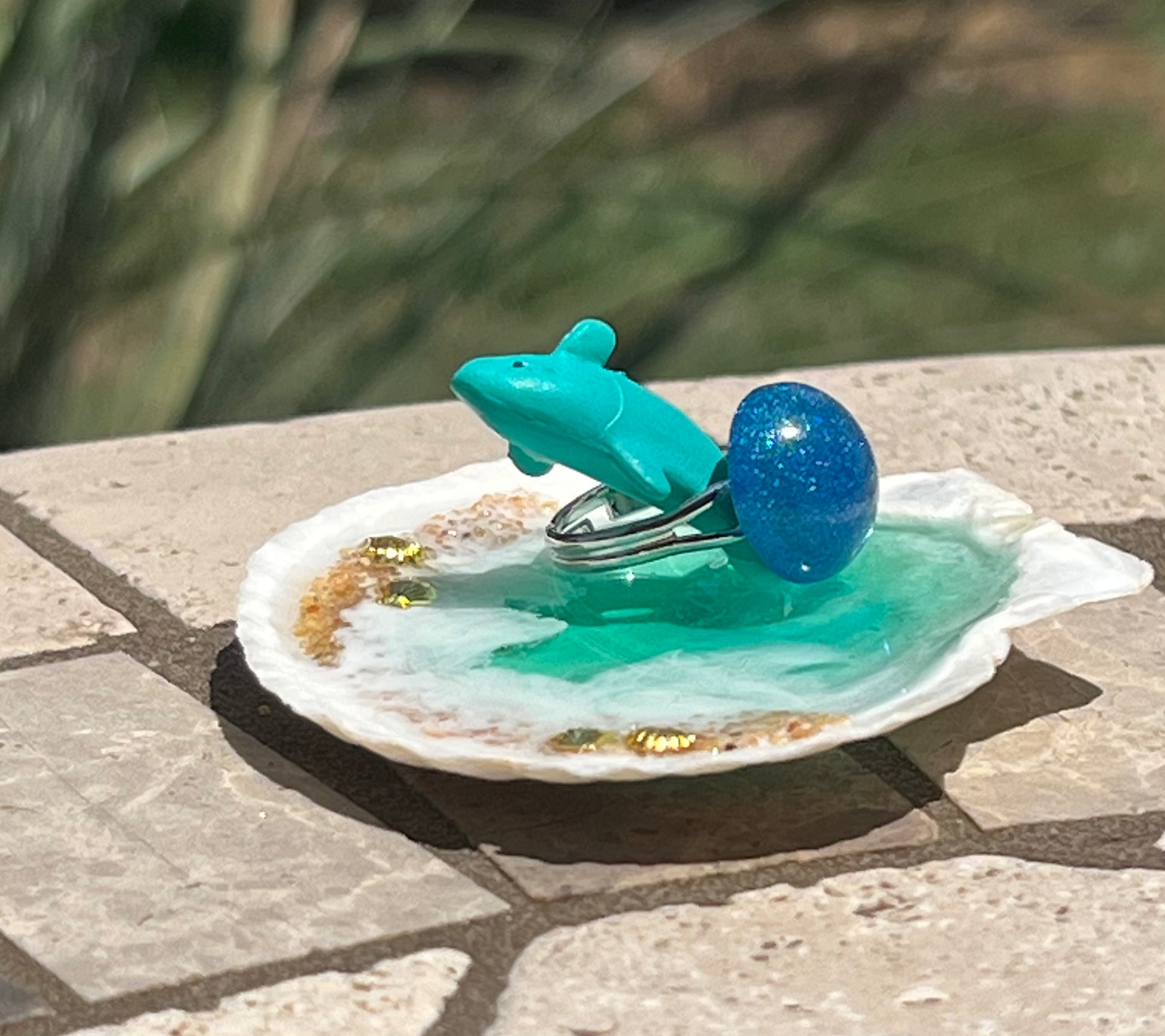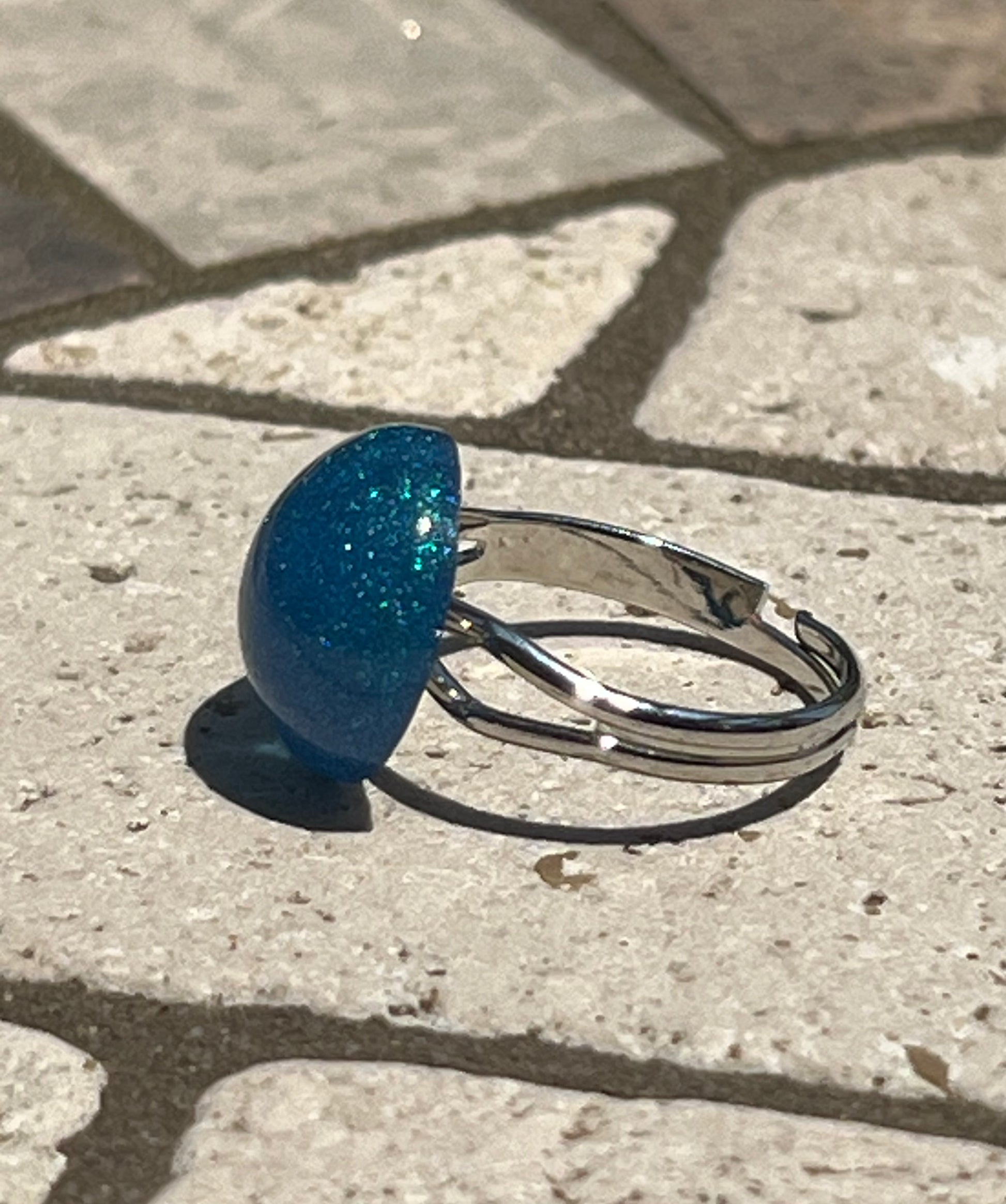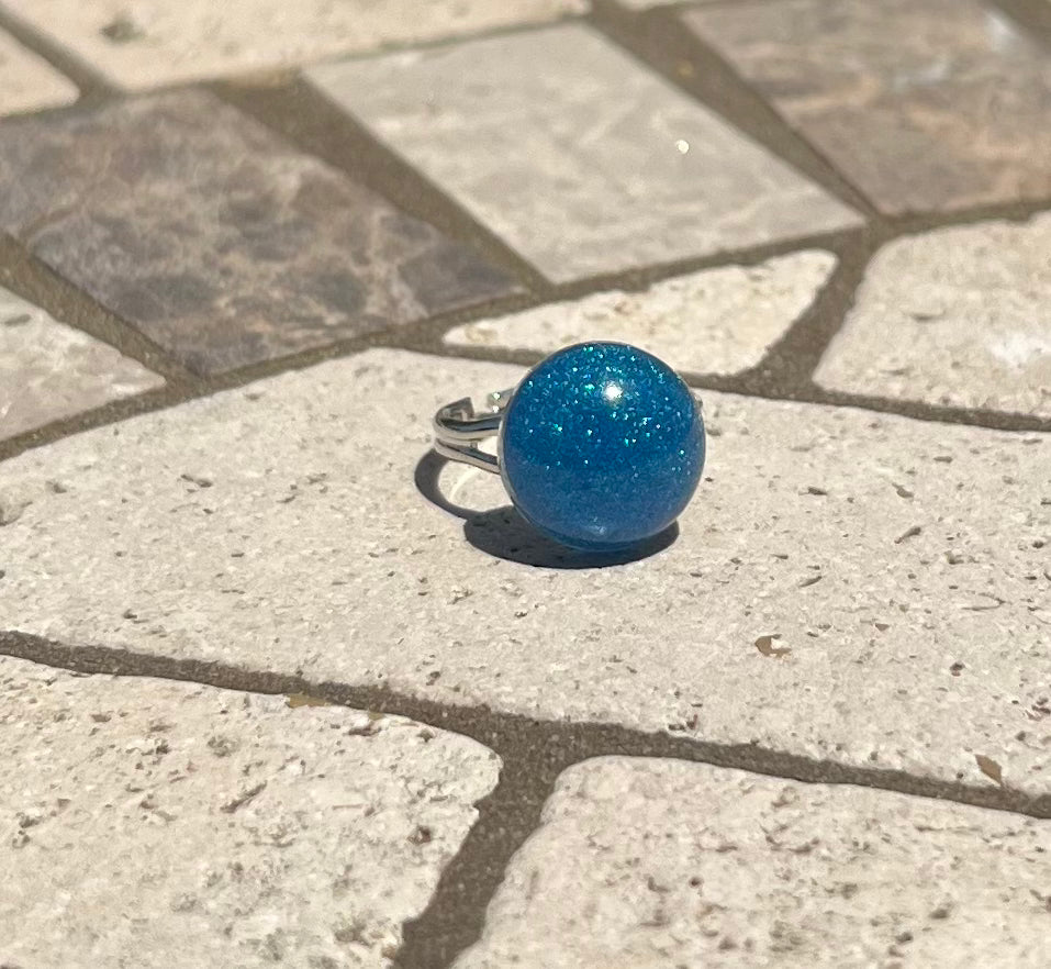 These charming rings raise your spirits as it shines on your finger! Each one is handmade with high quality epoxy resin and mica powder. The adjustable rings are 17mm in diameter and can expand to other fitting size.
