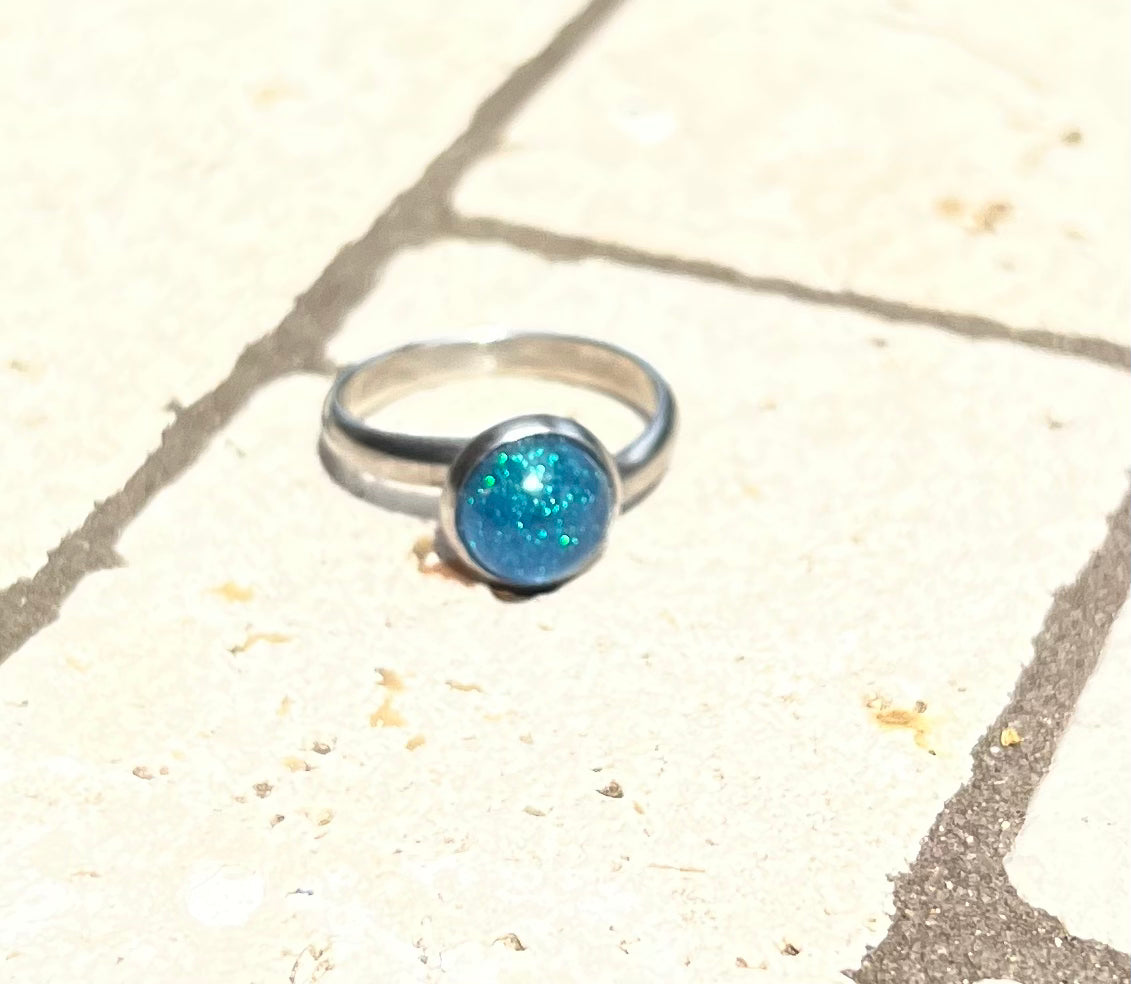 This stylish silver ring is made with a high-quality epoxy for superior strength and durability. Its sparkling ocean blue stone adds a touch of elegance, perfect for any special occasion.