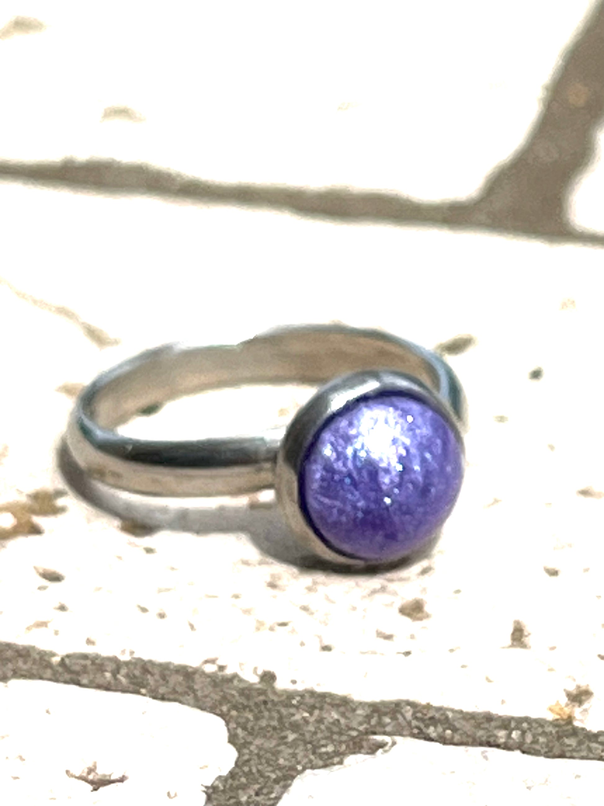 This beautiful silver ring will add a touch of sophistication to any look. Expertly crafted with epoxy, it is adorned with stunning purple colorant to capture the eye. Perfect for any occasion, this exquisite Ring is sure to make a statement.