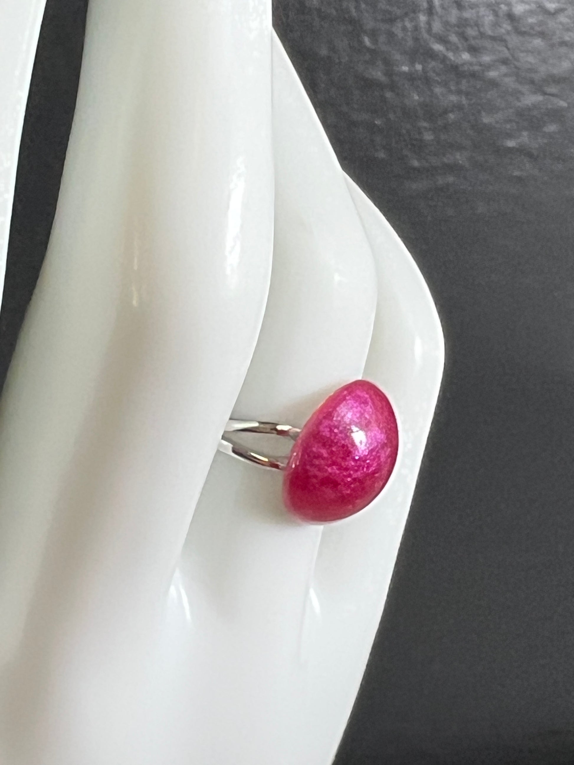 This exquisite silver ring features a unique handmade gem crafted with epoxy for an elegant, eye-catching beautiful shade of red. Perfect for special occasions or everyday wear, this stylish ring will add a touch of glamour to any ensemble.
