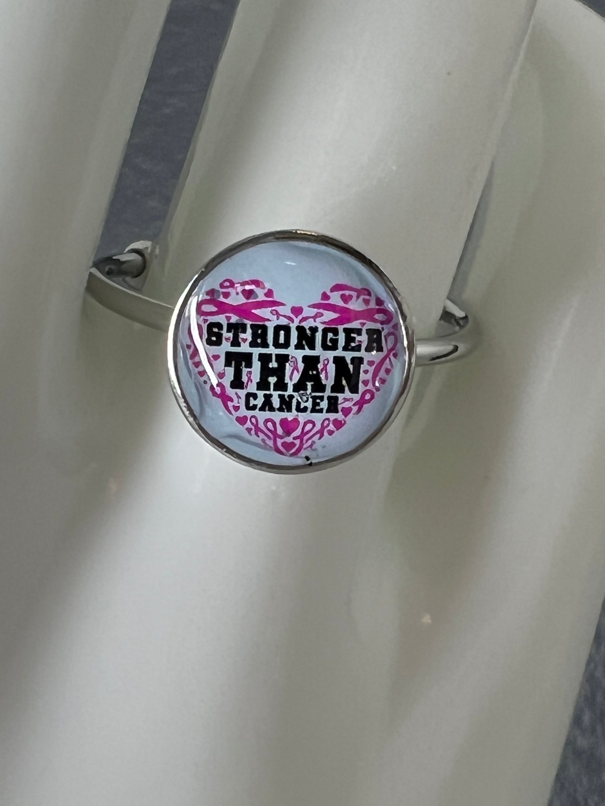 This stylish silver ring features a tranquil sky blue background and a lovely pink breast cancer uplifting message. Let this piece be a gentle reminder of hope and strength.