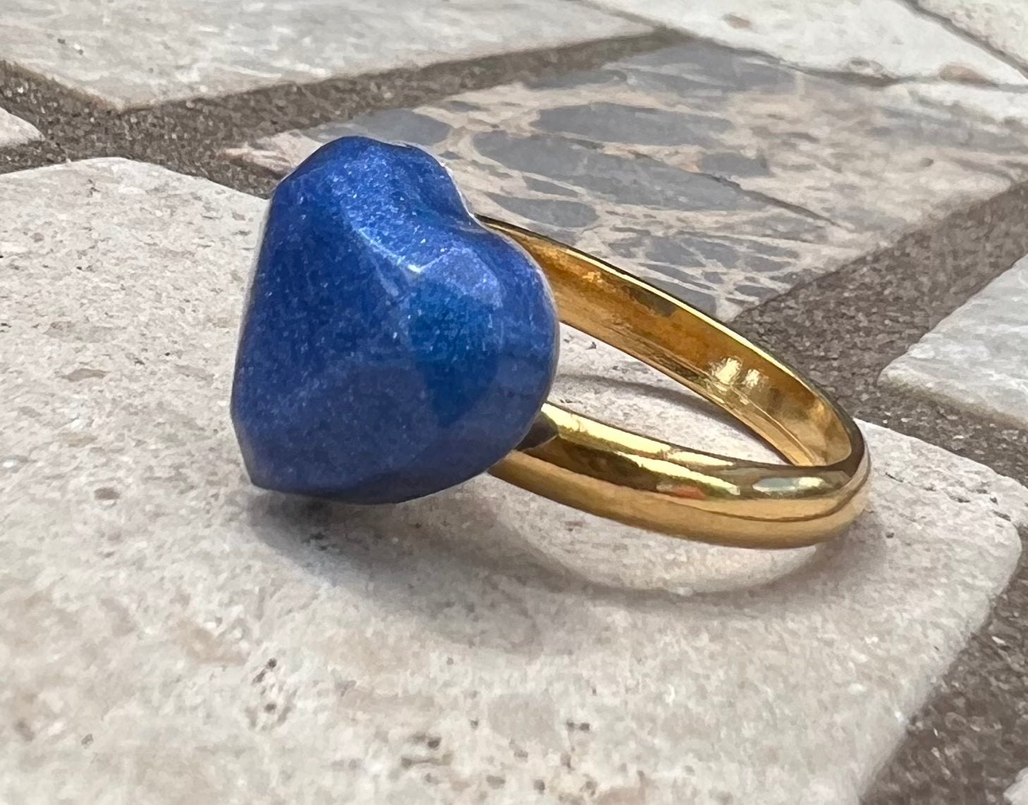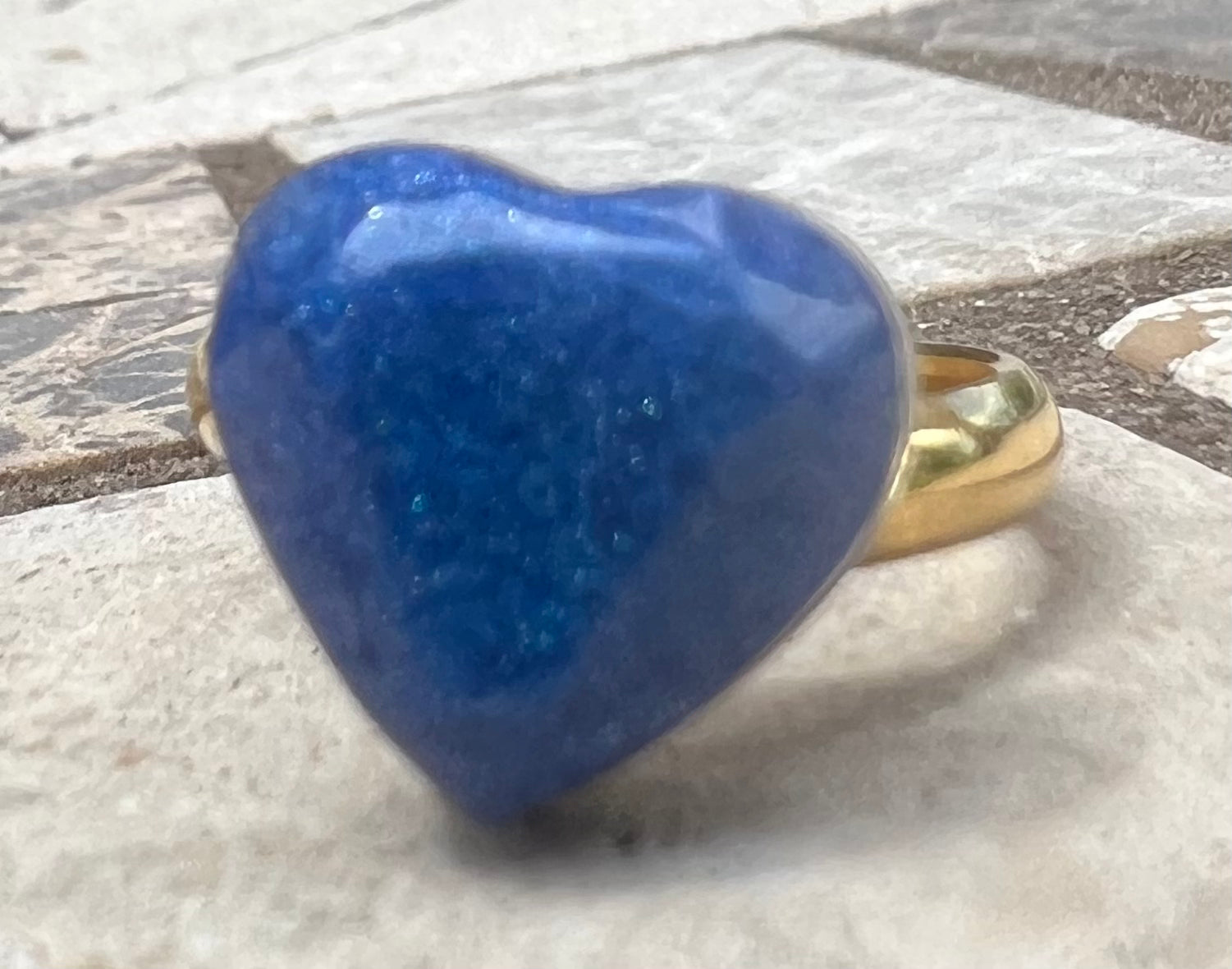 These charming rings raise your spirits as it shines on your finger! Each one is handmade with high quality epoxy resin and mica powder. The adjustable rings are 17mm in diameter and can expand to other fitting size. The ring is stainless steel and gold plated.