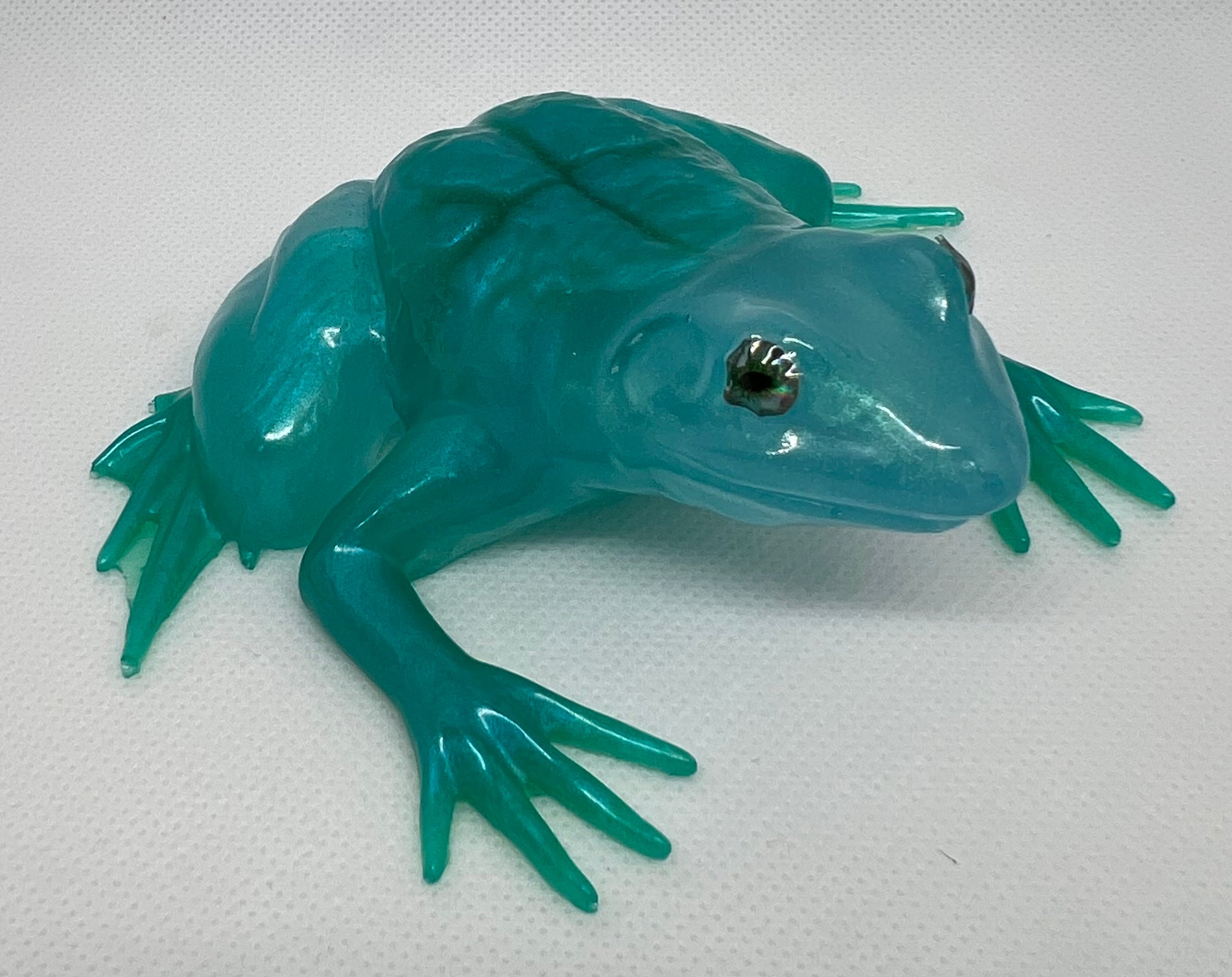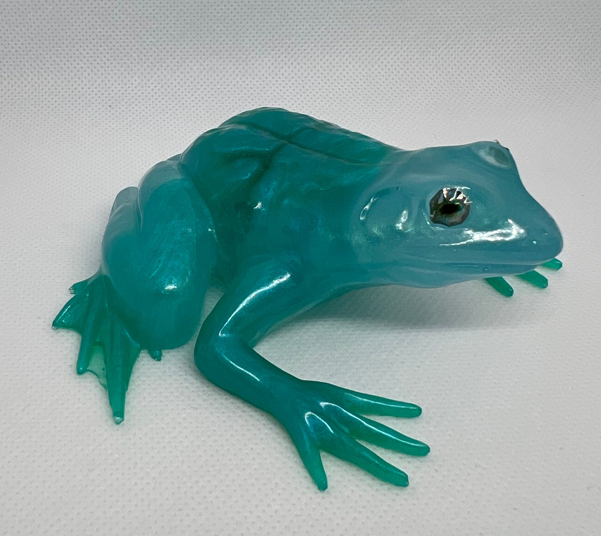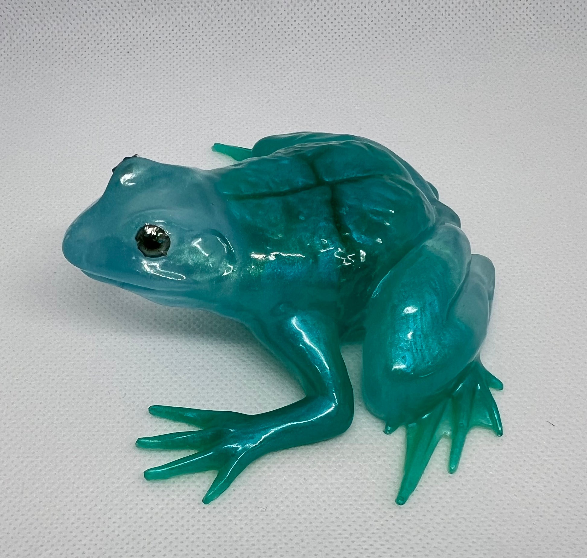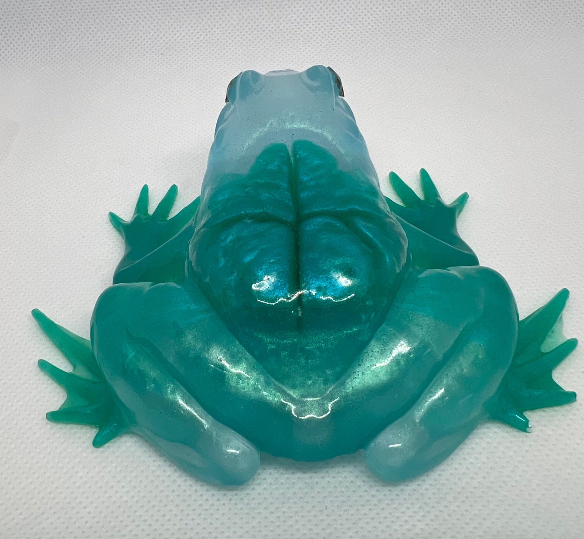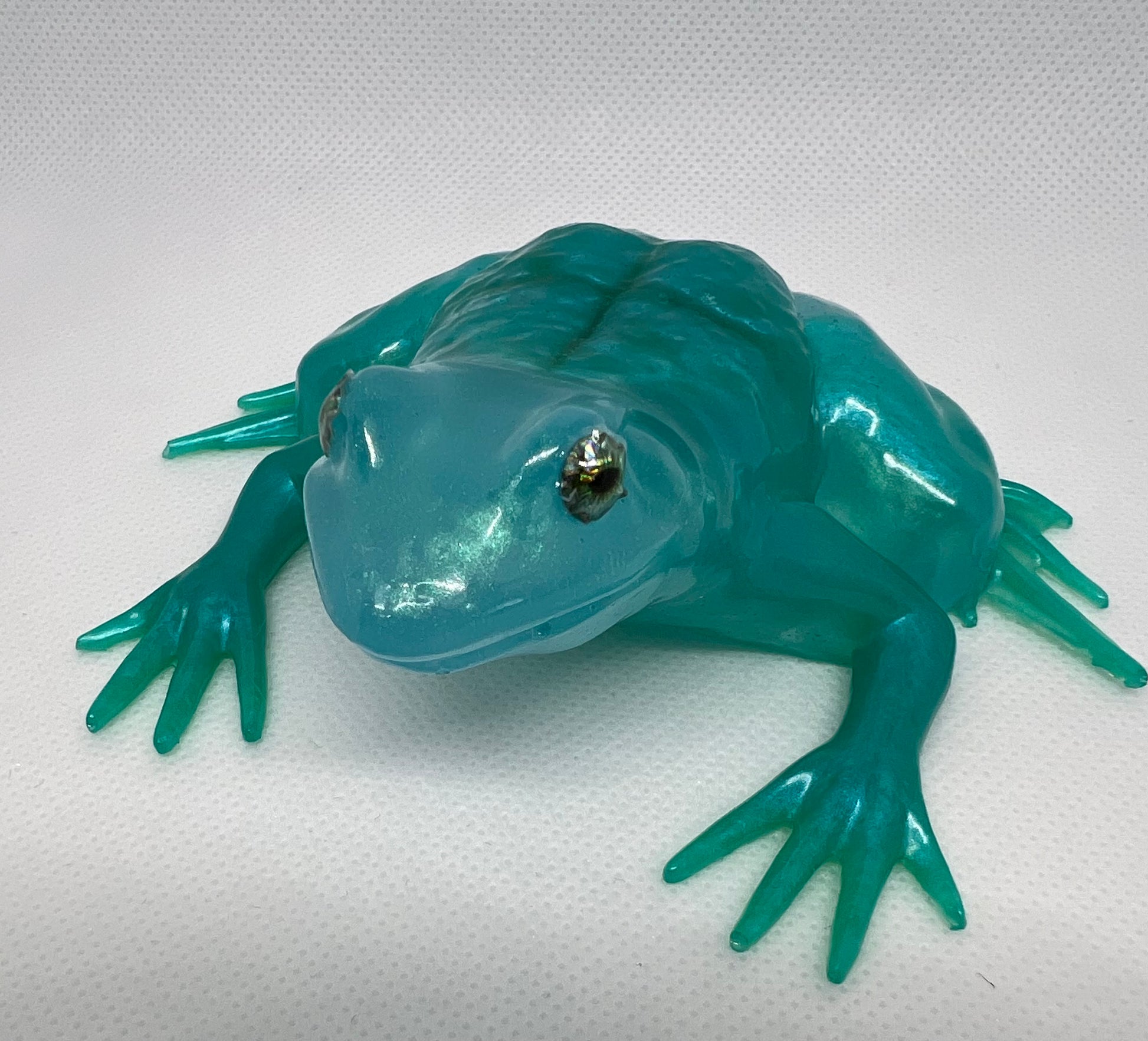 Handcrafted with epoxy resin, this stunning turquoise frog is sure to add a touch of joy to your day. With its realistic eyes and intricate details, it's the perfect addition to any home or office. Bring a bit of nature indoors and brighten up your space with this unique and beautiful piece.