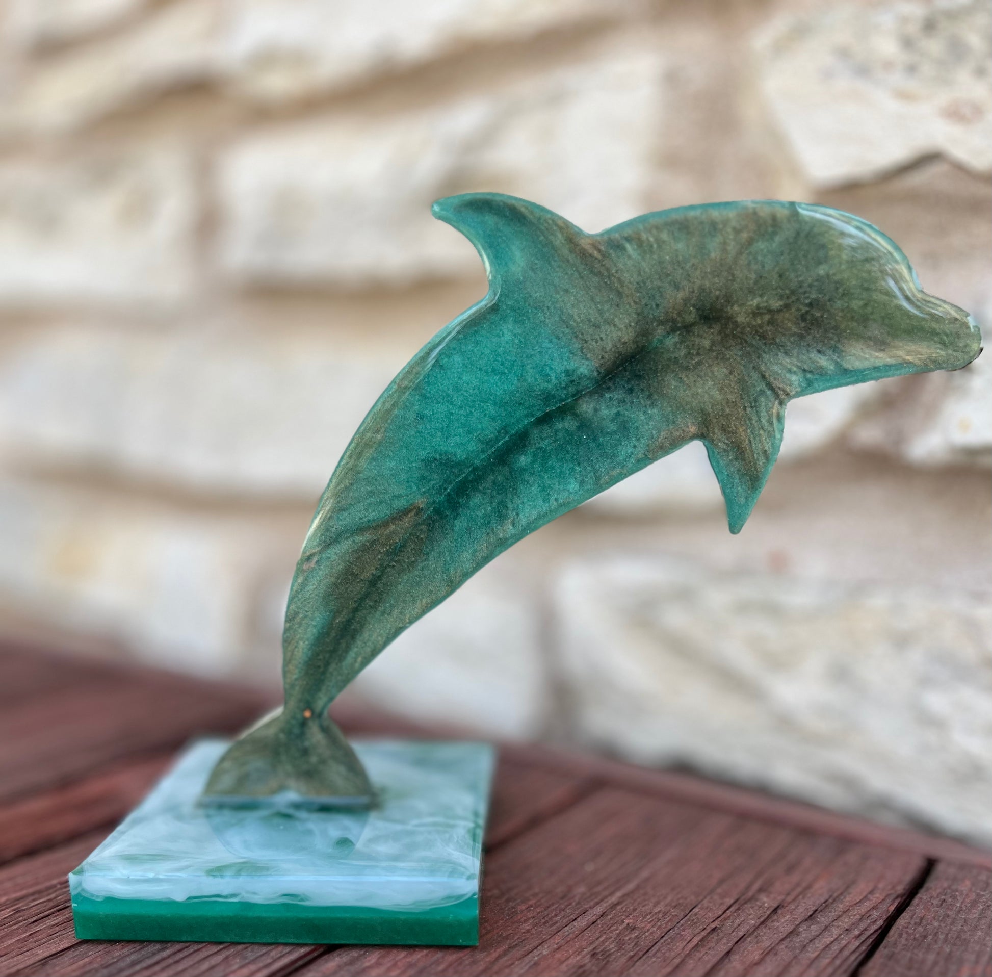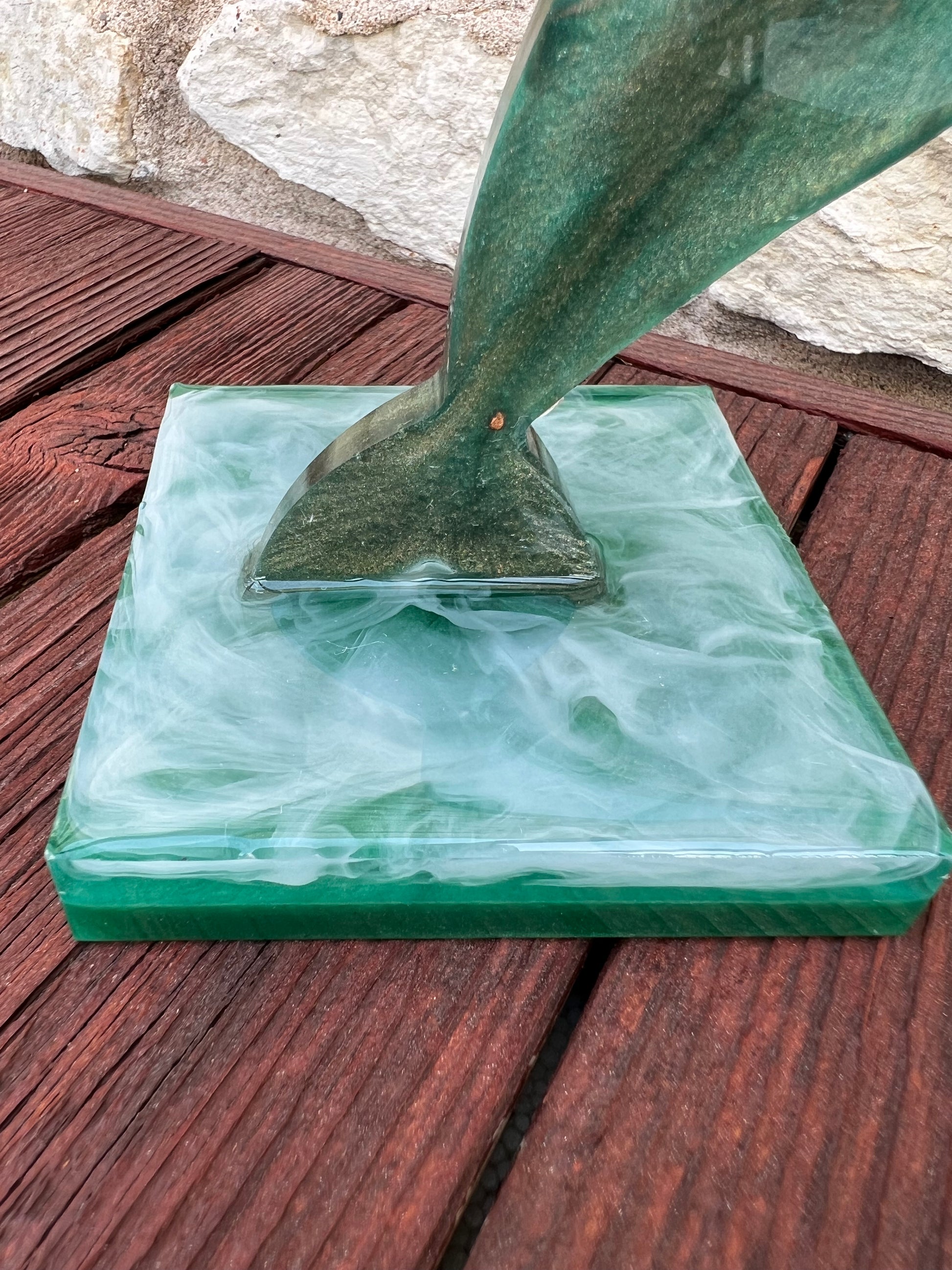 This exclusive Dolphin figurine crafted with epoxy is truly one-of-a-kind. Its harmony of golds and greens generates an eye-catching glimmer. Obtain this singular item for your dwelling and introduce a new topic of discussion.
