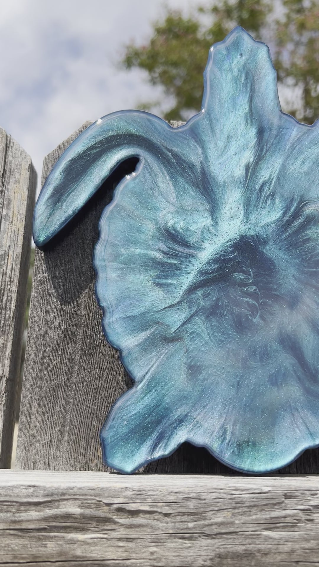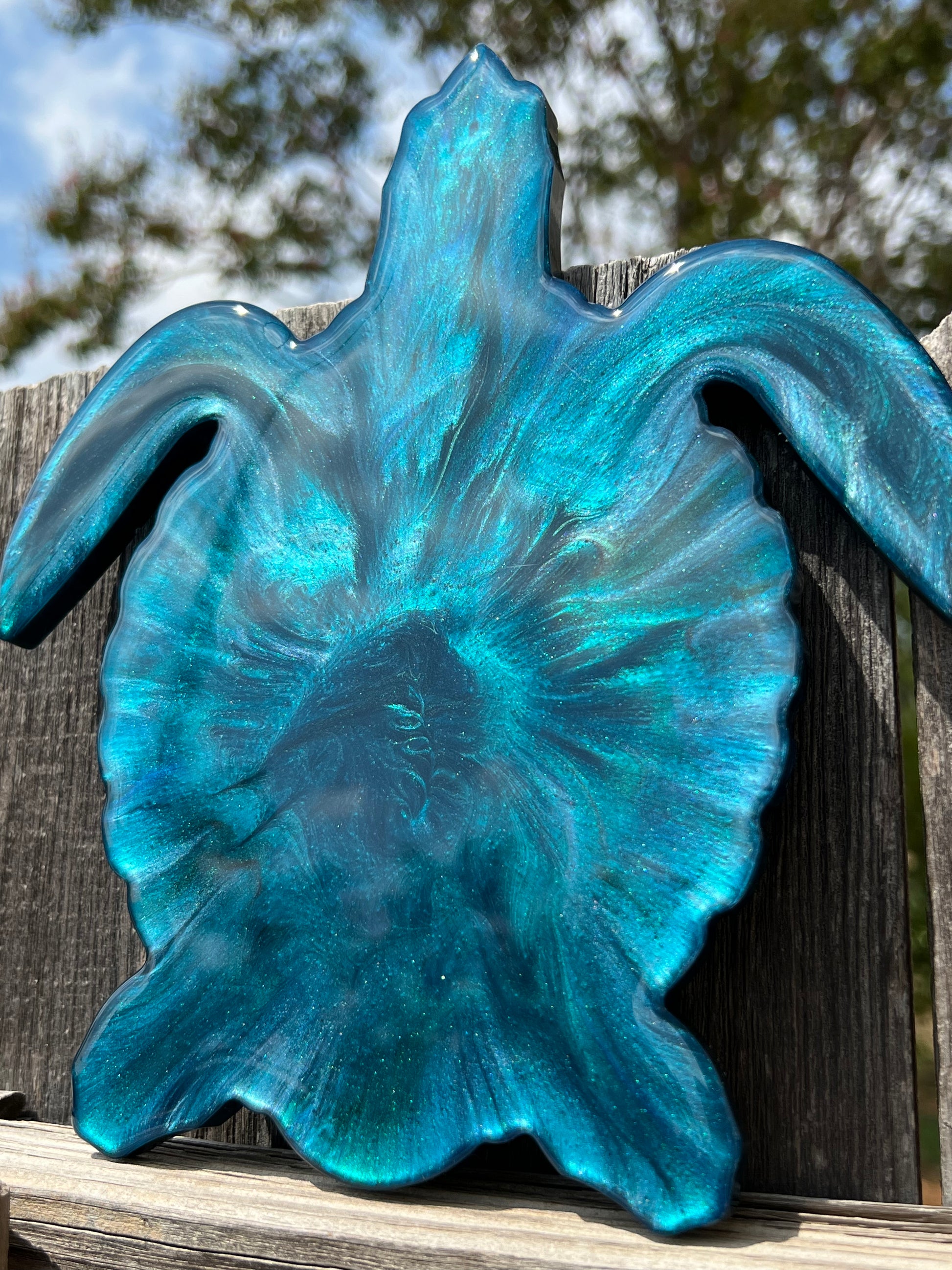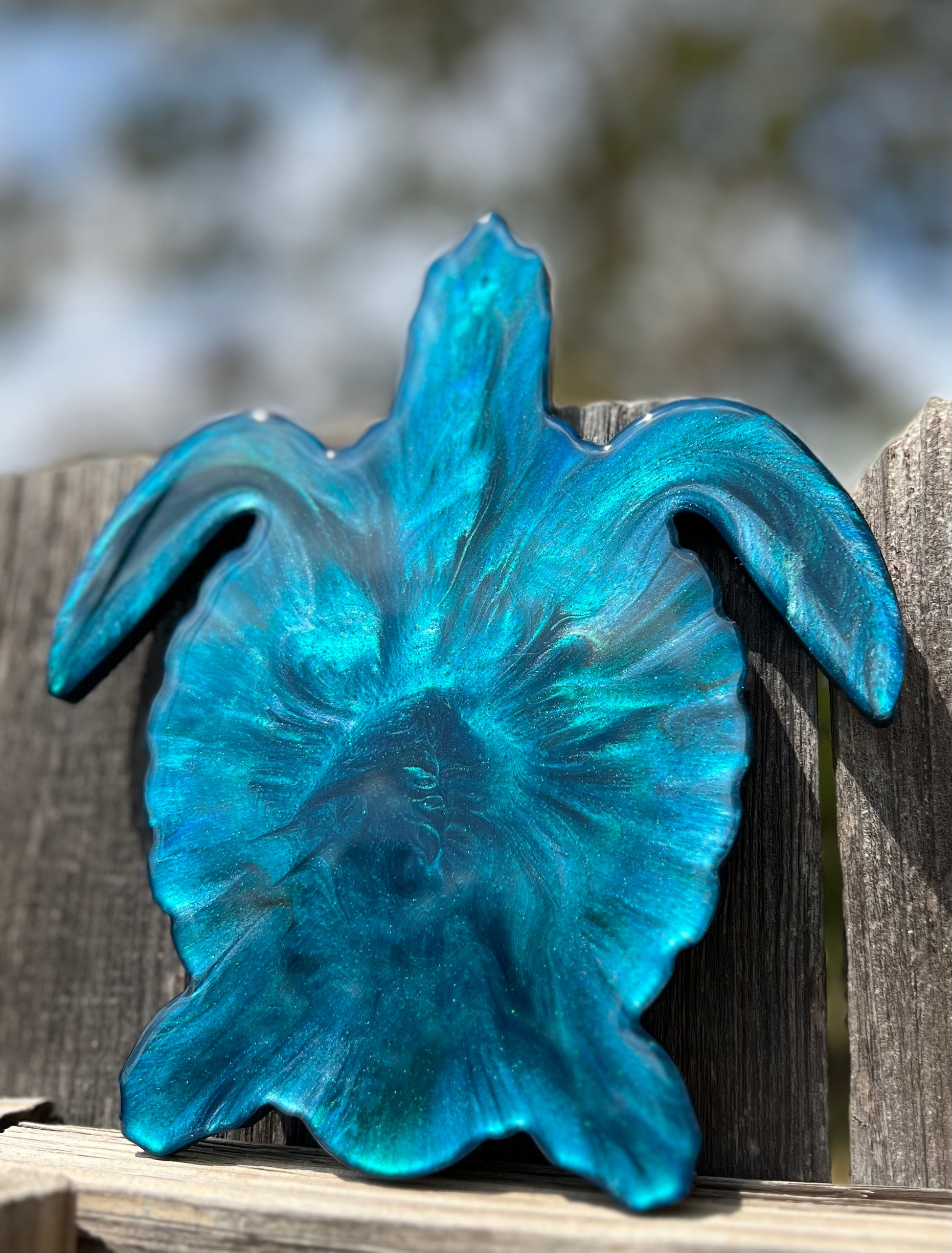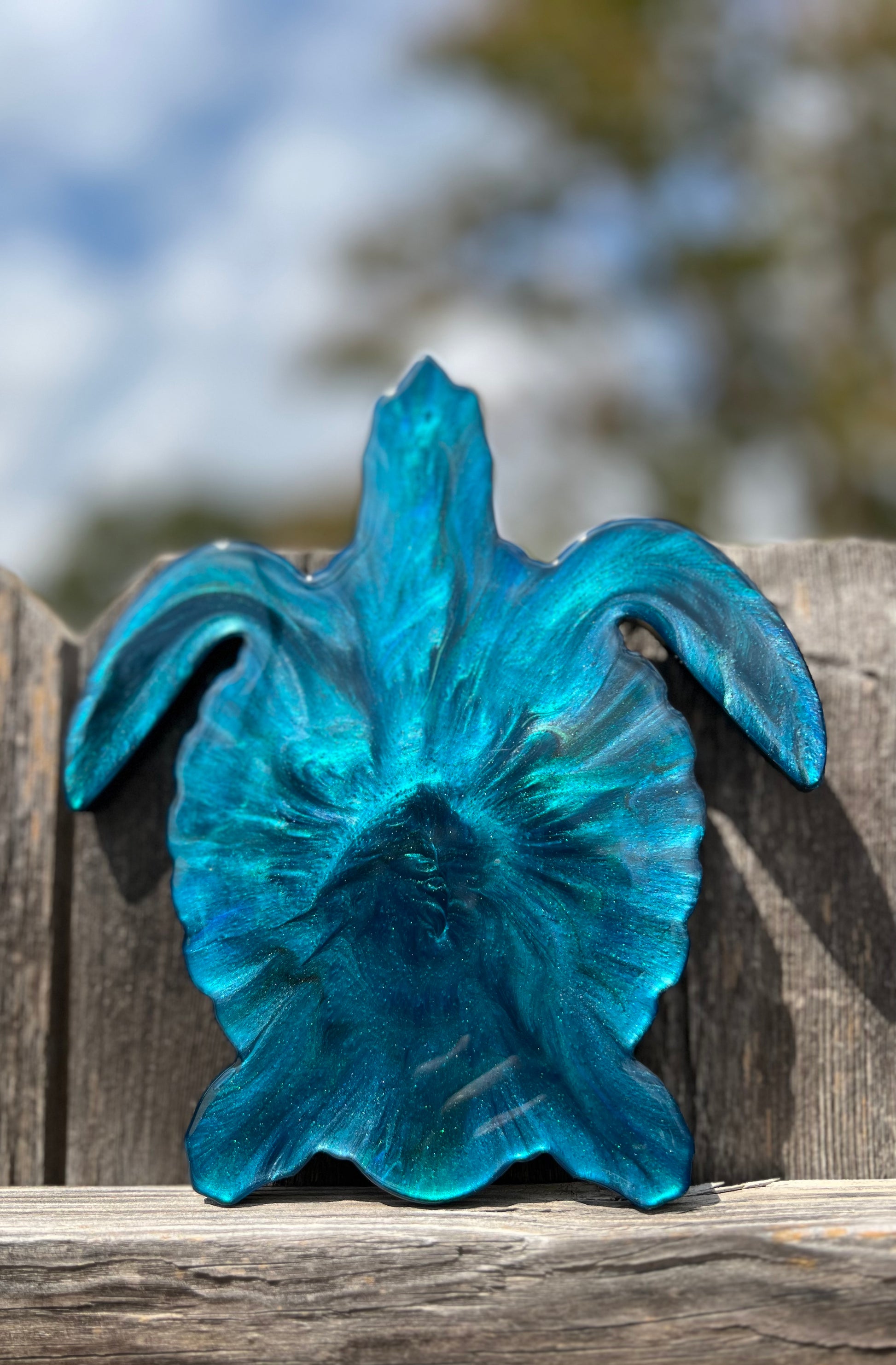 Uniquely crafted from a blend of blue and green epoxies, this one-of-a-kind handmade turtle is sure to be a conversation piece. With its stunning design, it adds a touch of artistry to any space.