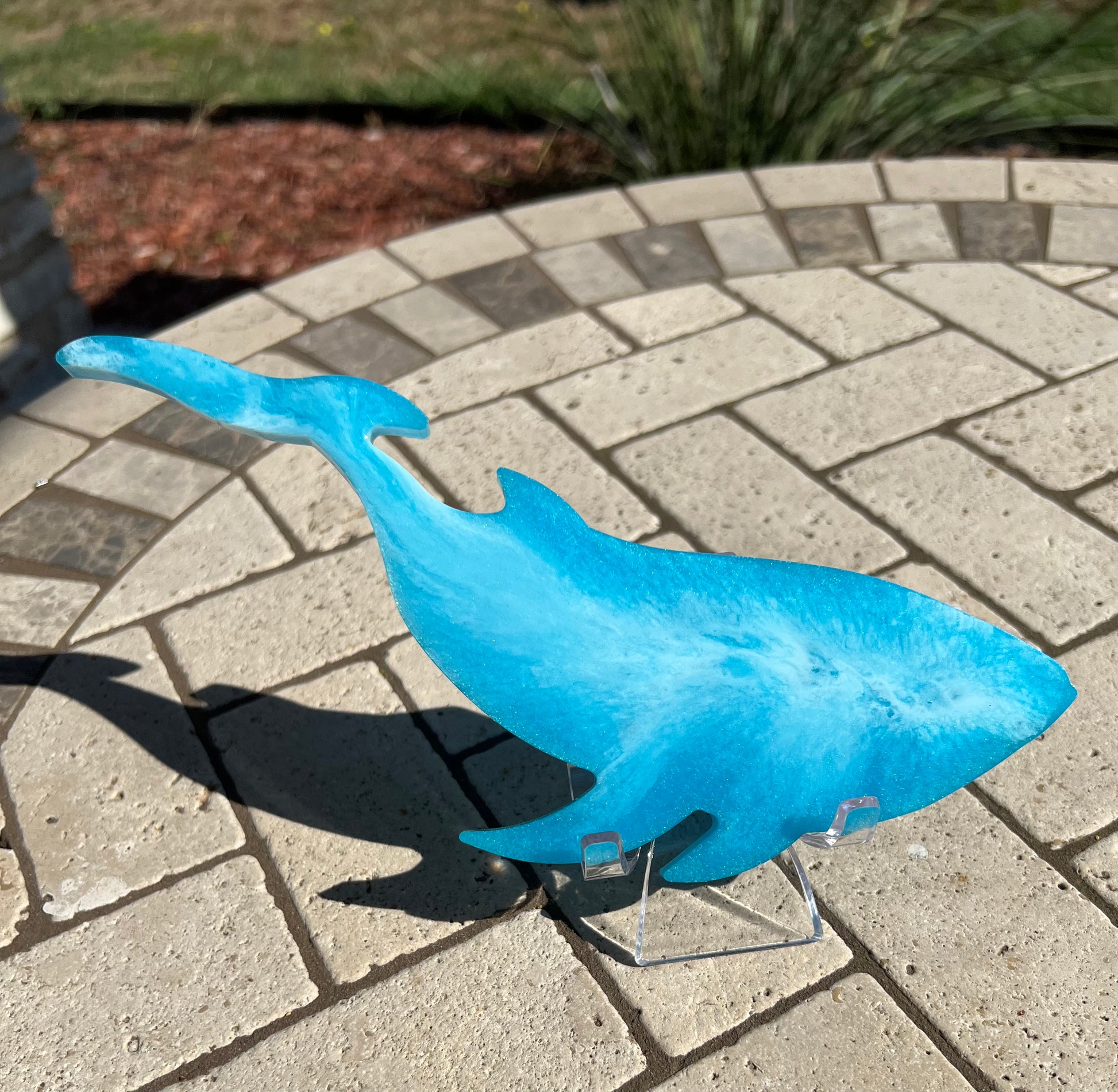 Our Whale is a perfect addition to any home or office. It is made of durable epoxy and features an eye-catching ocean blue color, sure to draw the attention of your visitors. With its high quality build and charming looks, you're sure to love this whale.